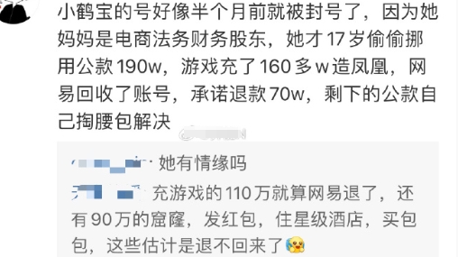 逆水寒缘定三生区榜一小鹤宝,以为是个百万富婆,其实是偷了妈妈公司的公款