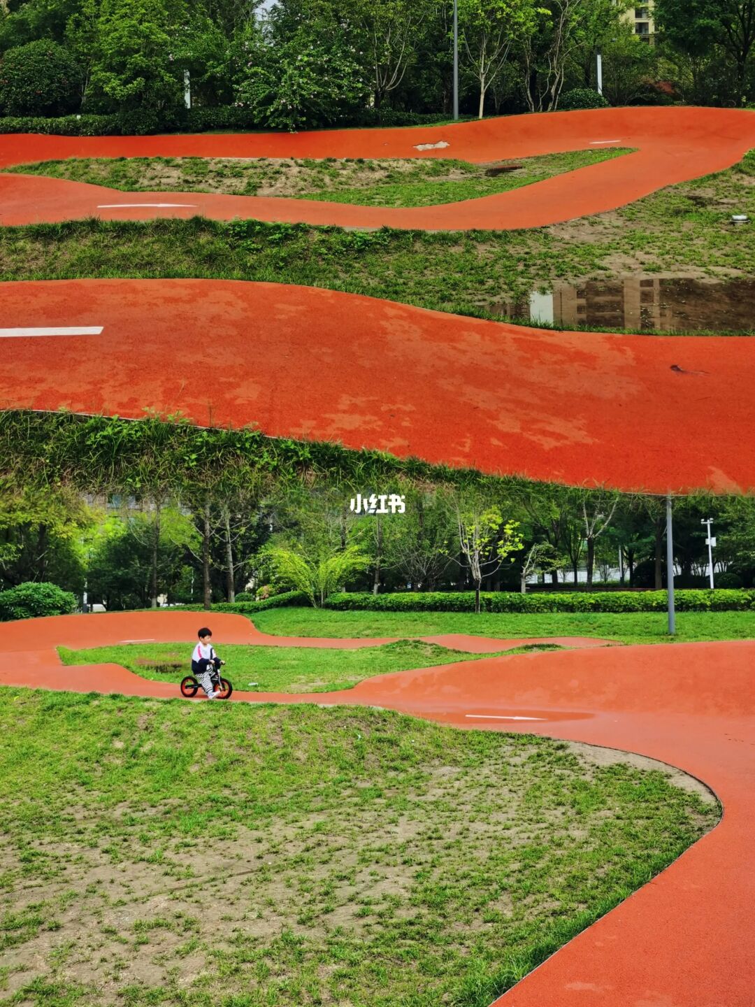📍高德地图导航“长安区启航公园”即可到达,马路边上有停车位🅿️,很方便!(公园面积不大,走上去就可以看到红色的赛道)