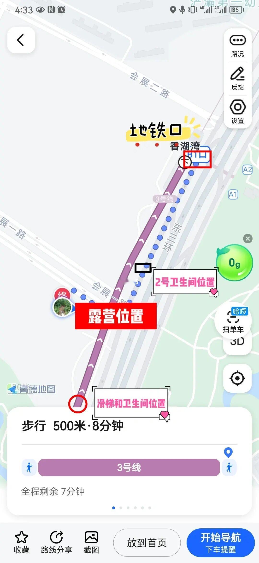 📍高德地图导航“香湖湾地铁口B1口,(如图6)的位置继续向前开几十米,就可到达露营⛺️的位置。