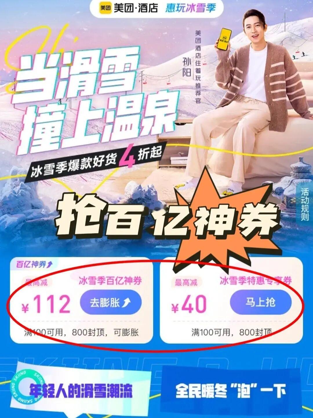 近期美团新推出了“激情滑雪撞上暖冬温泉”的活动,上美团App搜【17777】进入活动页面,就可领取百亿神券还可膨胀,首单zui高可减136,西安周边好多酒店都能用,还有免费早餐,延迟退房等权益,快来和我薅美团的羊毛啦!