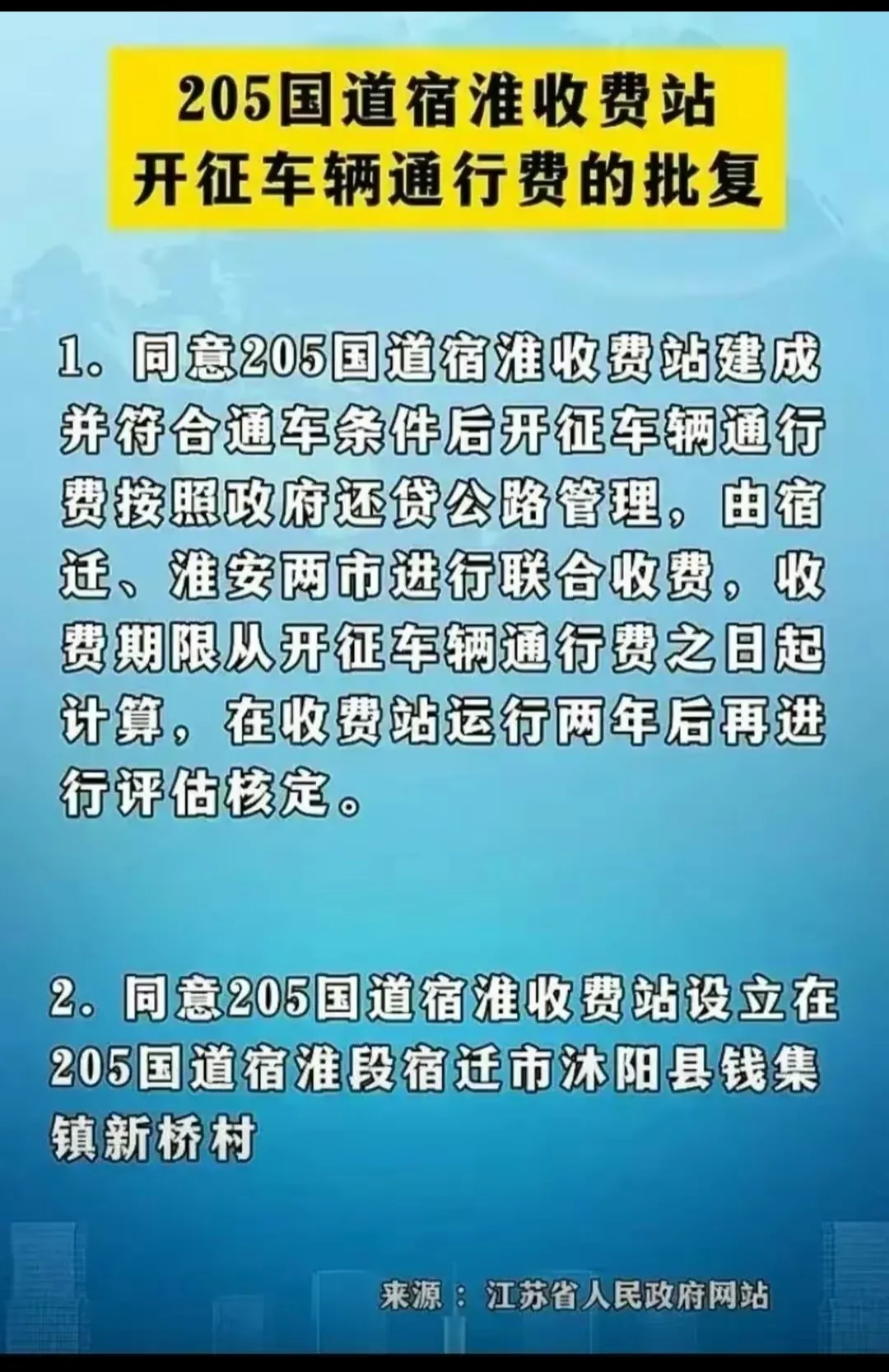江苏交通厅花一边说没钱,一边花近七千万在宿淮205国道建收费站,准备磨刀霍霍收费了。交通厅说的理由是这条国道还有很多债务没有偿还,只能重新开始收过路饯。此例一开,会如多诺米骨牌,全国各地的很多国道都会争先恐后的要收费了。我们先看一下长着根正苗红浓眉大眼不差钱的江苏是怎样惦记着大小车辆口袋的。 早在2018年底,江苏省发改委就批复了205国道宿淮收费站工程可行性研究报告,投资估算为6865万元。目前,该收费站已经建设完毕,即将开始正式收费。百度地图街景显示,在江苏省淮安市境内,205国道单向有三条车道,路况较好,部分路段两侧有护栏。 2007年8月,国家取消国道收费,还说了一句从此国道收费成为历史。现在江苏重新开始对国道收费,如何解释国家2007年取消国道收费的决定。江苏是全国少有的富裕省份,而公路是资源性的垄断行业,现在地主家也没有余粮了,就走回头路对国道重新收费了,与情与理与法都说不过去了。众所周知,交通厅的公路系统的员工收入高,养了大批的人,为什么不从内挖潜增效呢?江苏这么做带了个坏头,全国各地哪条国道不差钱呢?是不是所有囯道都要轰轰烈烈学江苏了呢。掌握资源性的国道重新开始收费,让他人别无选择只能交钱,太可怕了。