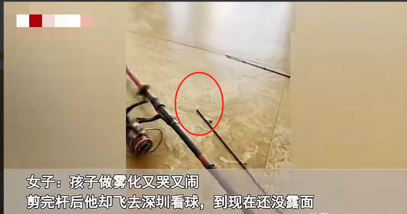 浙江,一对夫妻闹矛盾。妻子一气之下,用钳子剪断了老公的所有钓鱼竿,并扔到一边。可是没想到,丈夫看到鱼竿被剪,并没有说什么,转身就飞去深圳看球,留下妻子和做雾化又哭又闹的孩子,一直都没有露面。