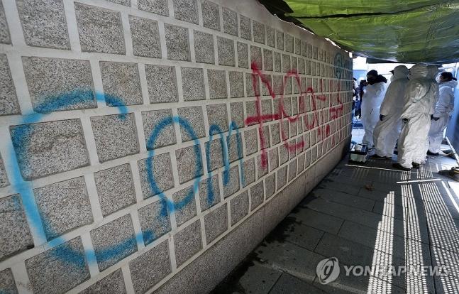 #韩国社会#【韩国警方逮捕了在景福宫墙上乱涂乱画的犯罪嫌疑人】 在犯罪90小时