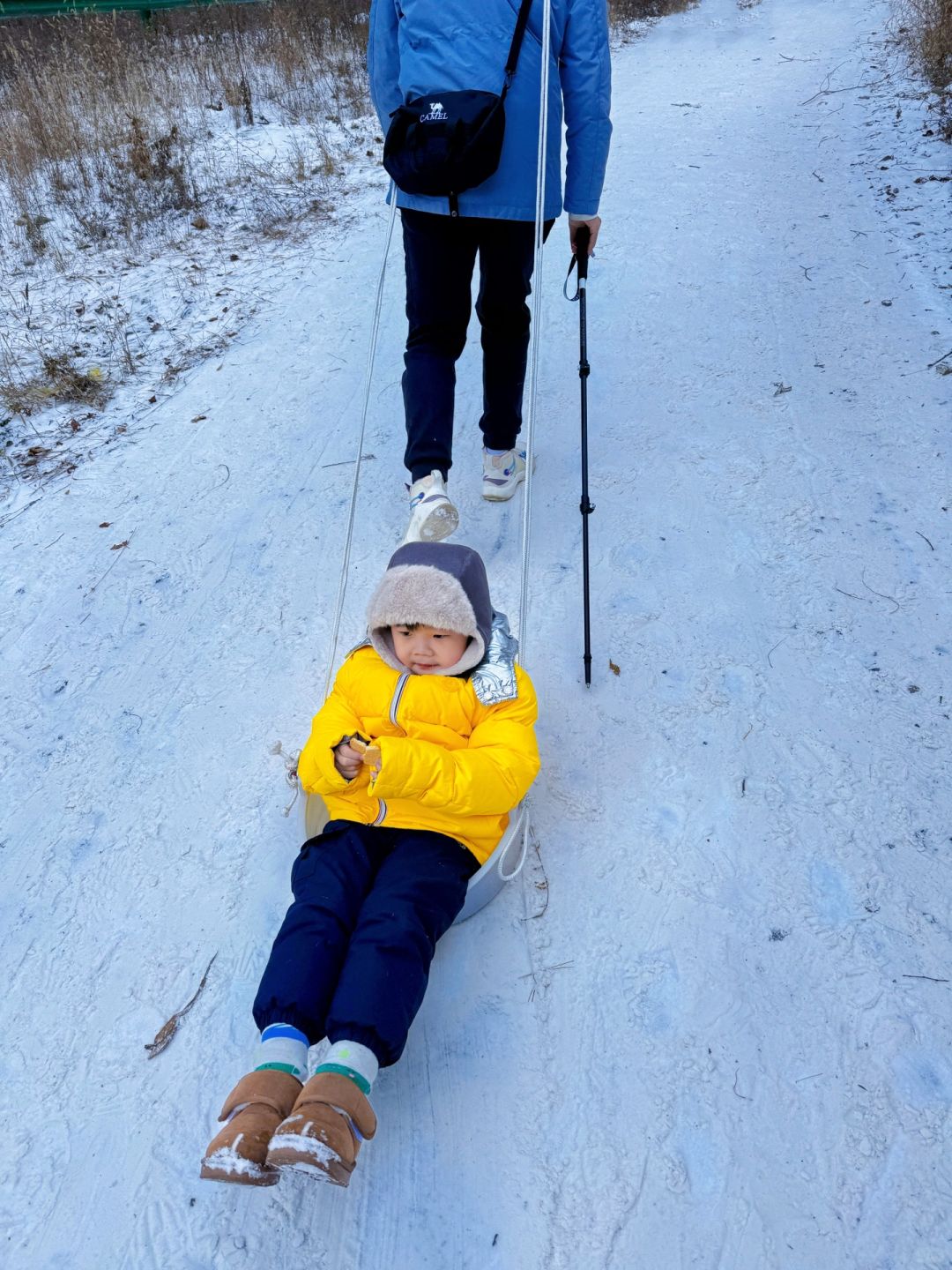 ✅给娃带滑雪板、穿雪地棉、带帽子🧢,做好保暖如果娃要玩雪,可带挖沙桶🪣~