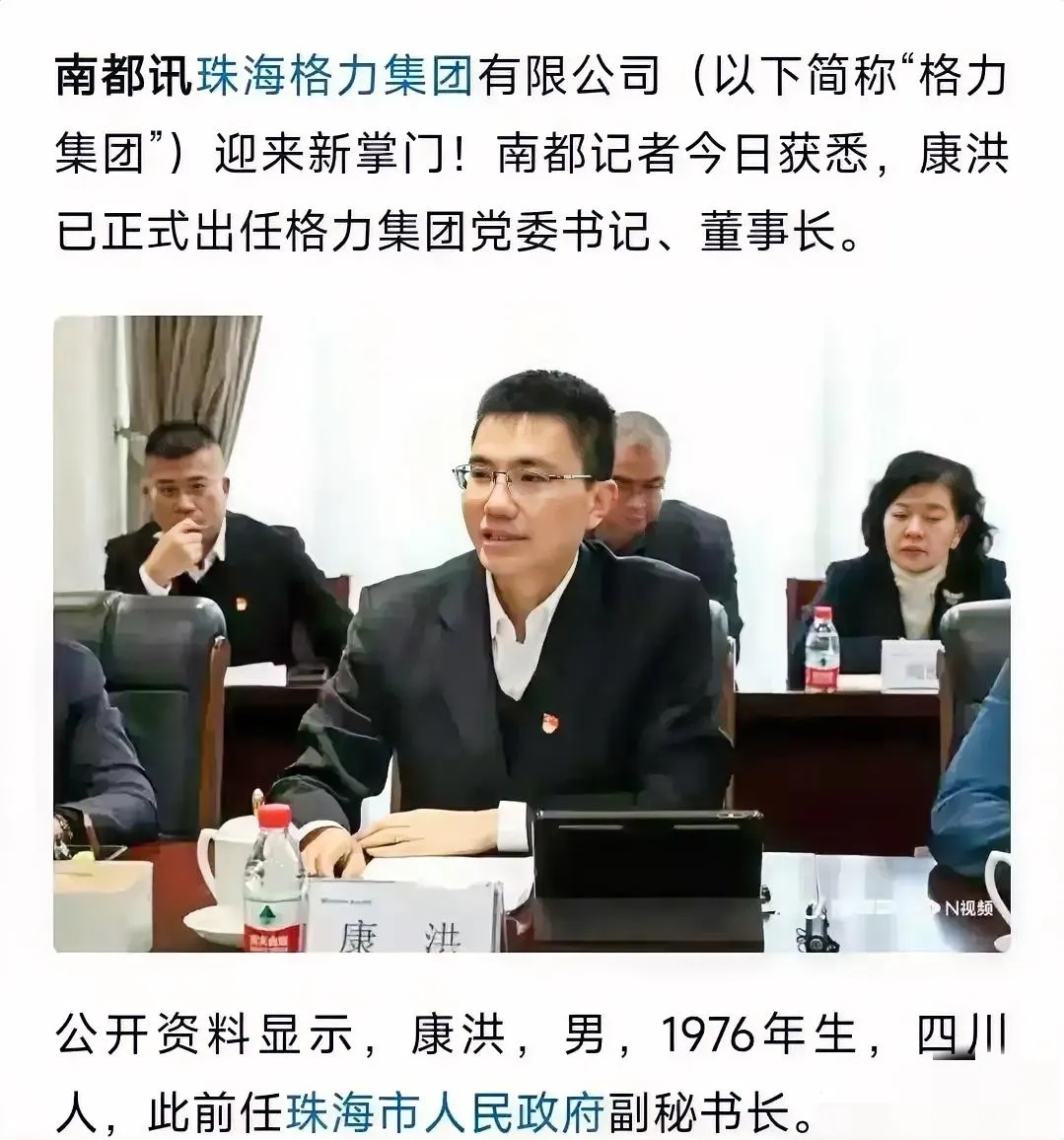 春节前夕,格力集团董事长康洪率队前往一线慰问员工,对在建项目进行调研。这意味着,格力集团已经易帅,由曾经担任珠海市政府副秘书长的康洪,接任格力集团董事长。