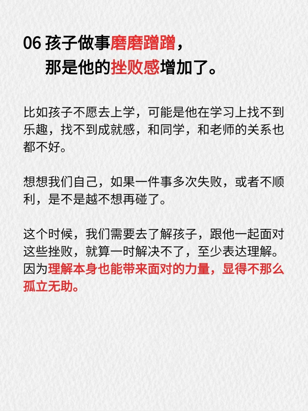 6⃣孩子做事磨磨蹭蹭,那是他的挫败感增加了。
