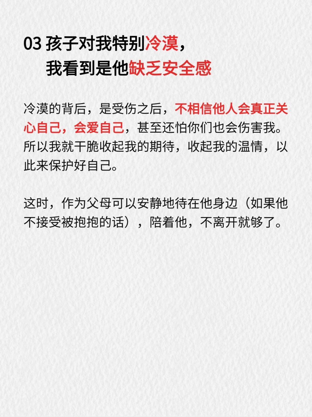 3⃣孩子对我特别冷漠,我看到是他缺乏安全感。