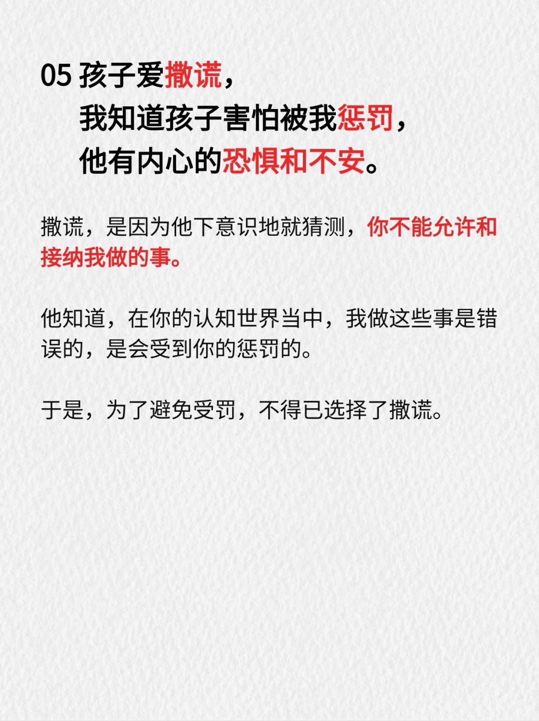 5⃣孩子爱撒谎,我知道孩子害怕被我惩罚,他有内心的恐惧和不安。