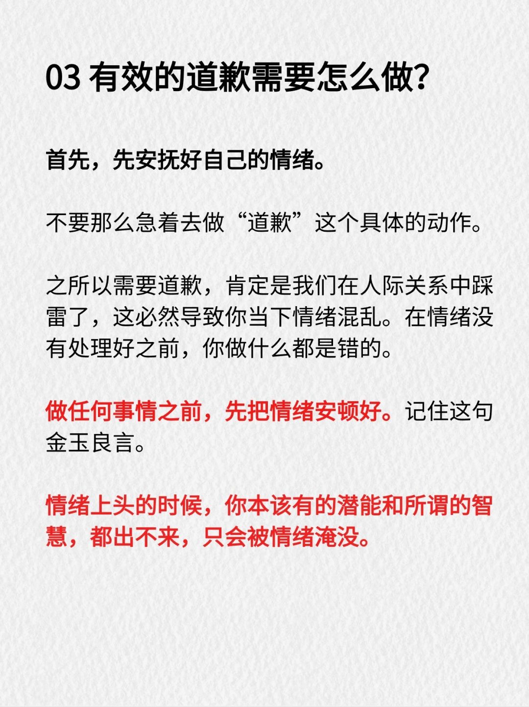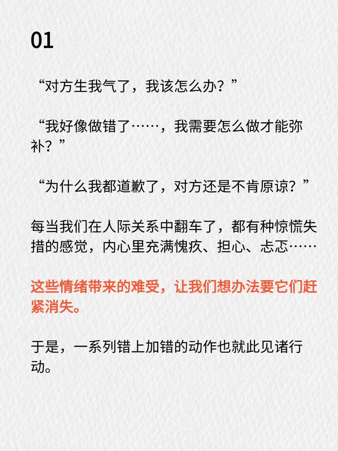 之所以需要道歉,肯定是我们在人际关系中踩雷了,这必然导致你当下情绪混乱。在情绪没有处理好之前,你做什么都是错的。