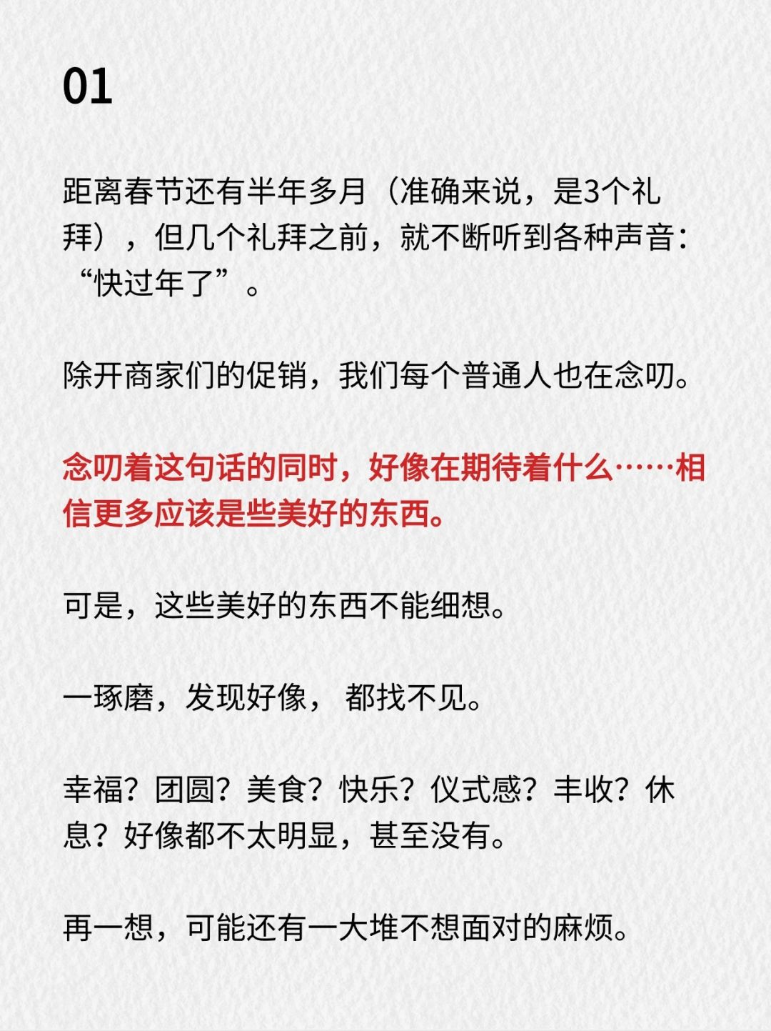 距离春节还有半年多月(准确来说,是3个礼拜),但几个礼拜之前,就不断听到各种声音“快过年了”。