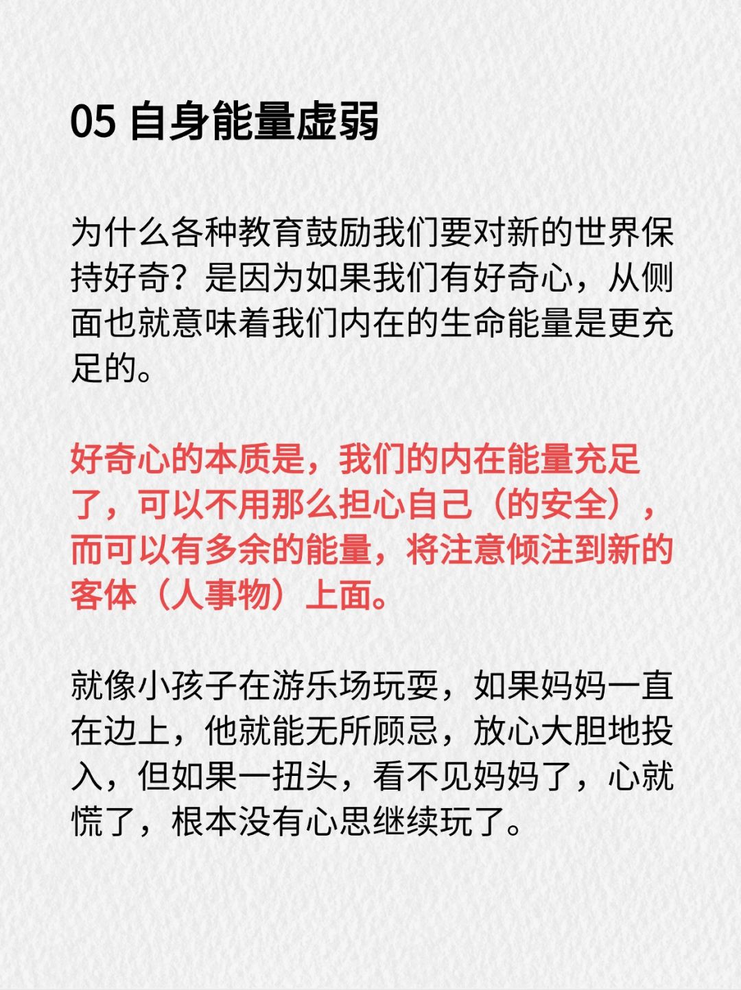 为什么各种教育鼓励我们要对新的世界保持好奇?是因为如果我们有好奇心,从侧面也就意味着我们内在的生命能量是更充足的。