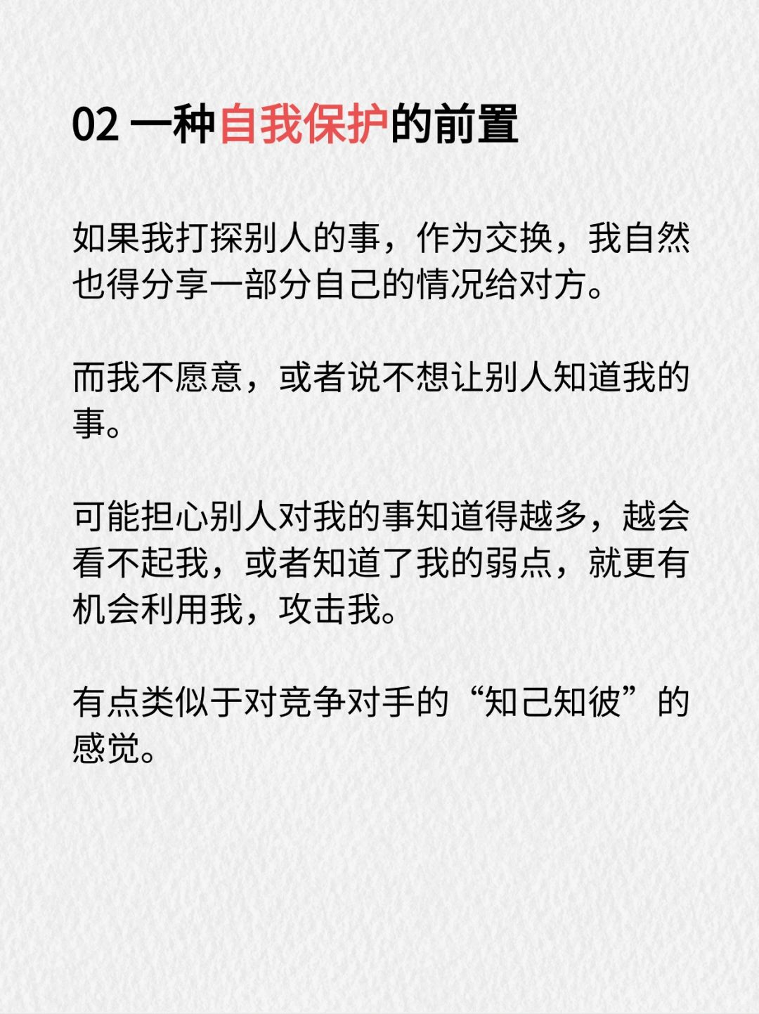 如果我打探别人的事,作为交换,我自然也得分享一部分自己的情况给对方。