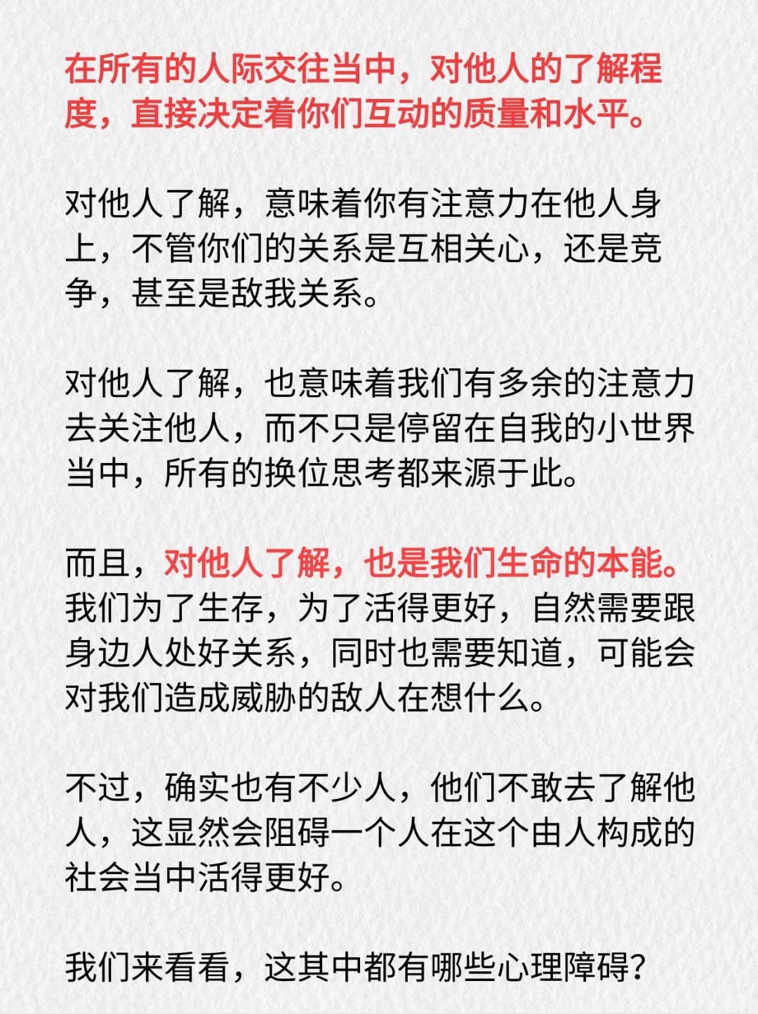 👉在所有的人际交往当中,对他人的了解程度,直接决定着你们互动的质量和水平。