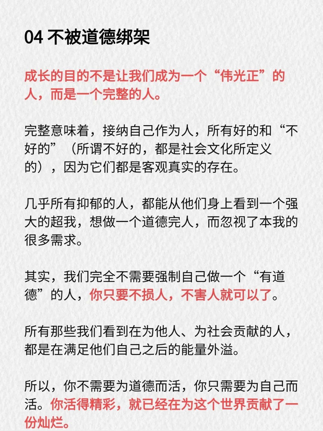 所以,你不需要为道德而活,你只需要为自己而活。你活得精彩,就已经在为这个世界贡献了灿烂。