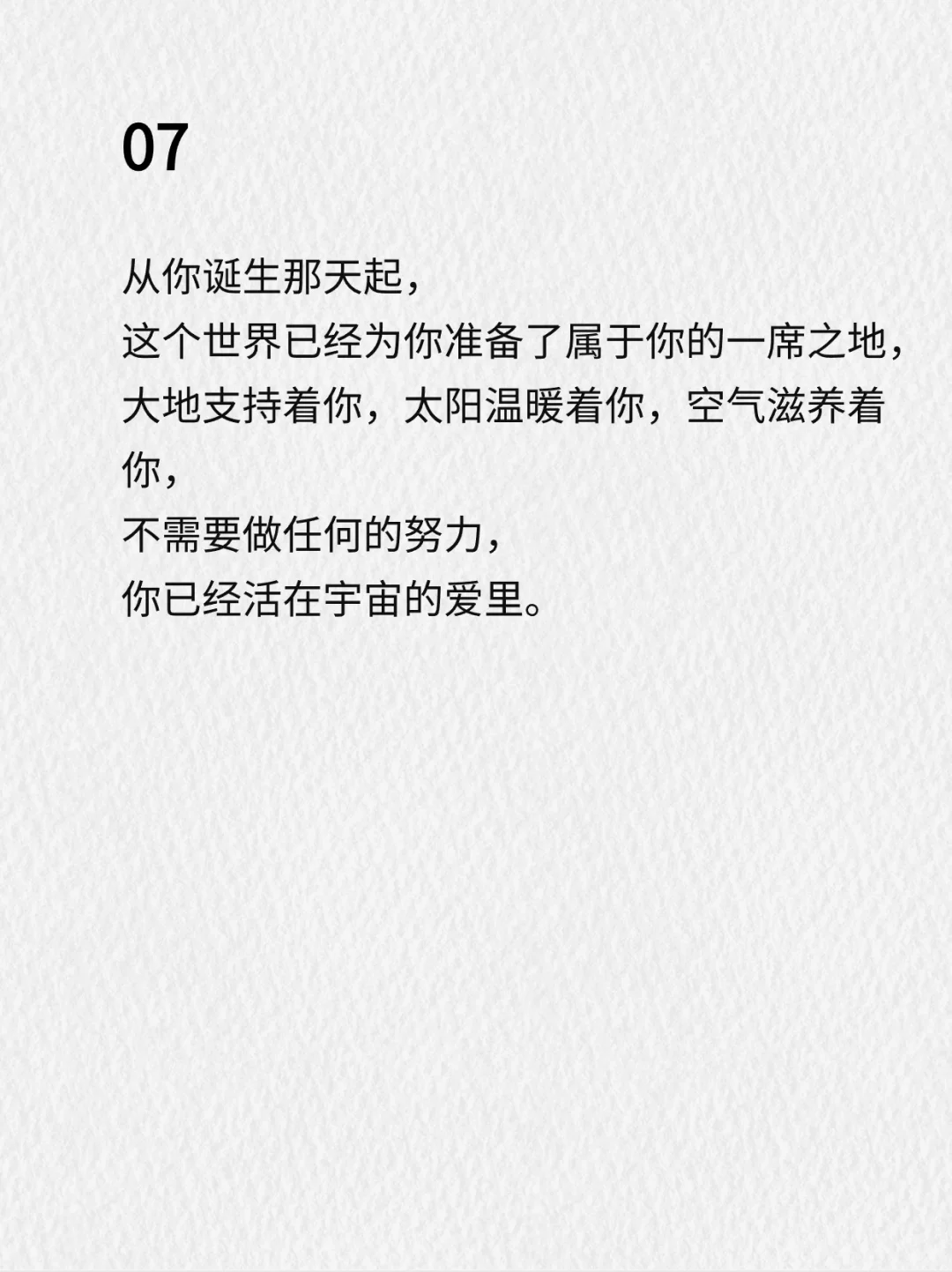 大地支持着你,太阳温暖着你,空气滋养着你,