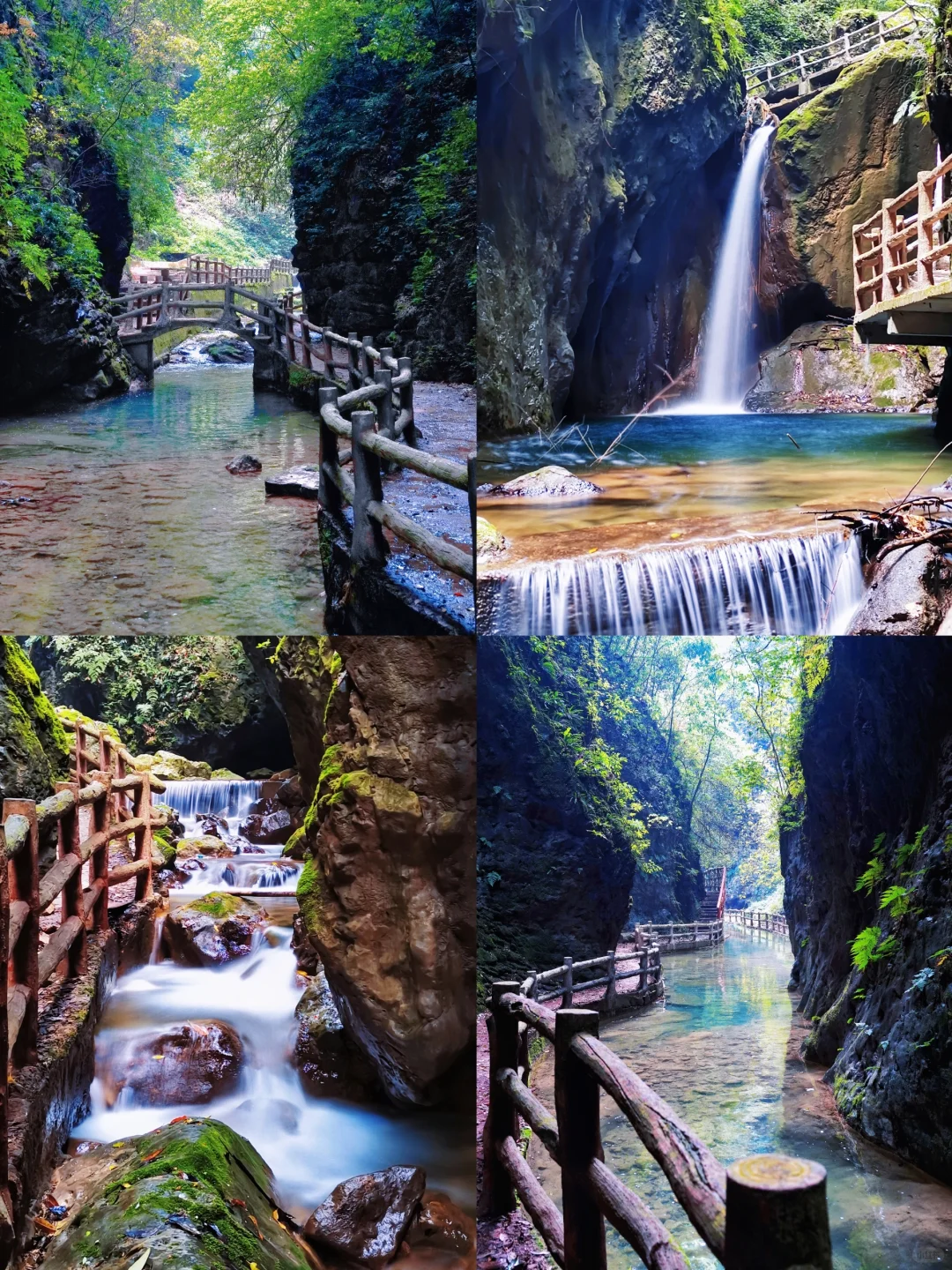 夹缝岩自然风景区,属紫林山国家森林带。走进景区栈道,沿途幽谷狭长,溪水潺潺,沿着溪水逆流而上,寻找水的踪迹。