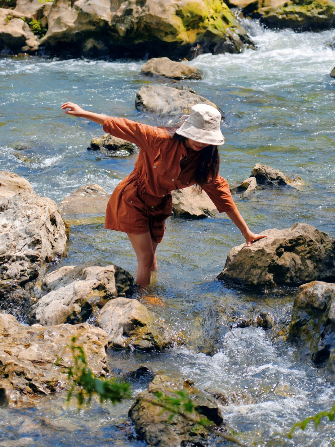 瀑布上游有较为平缓的河滩,夏季玩水很是赞!