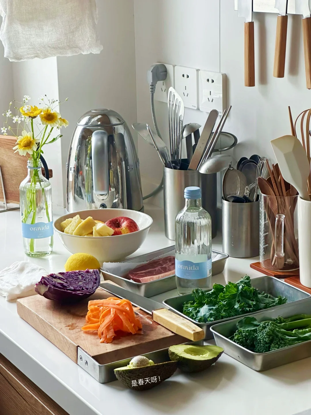 厨房里的插花太美好了