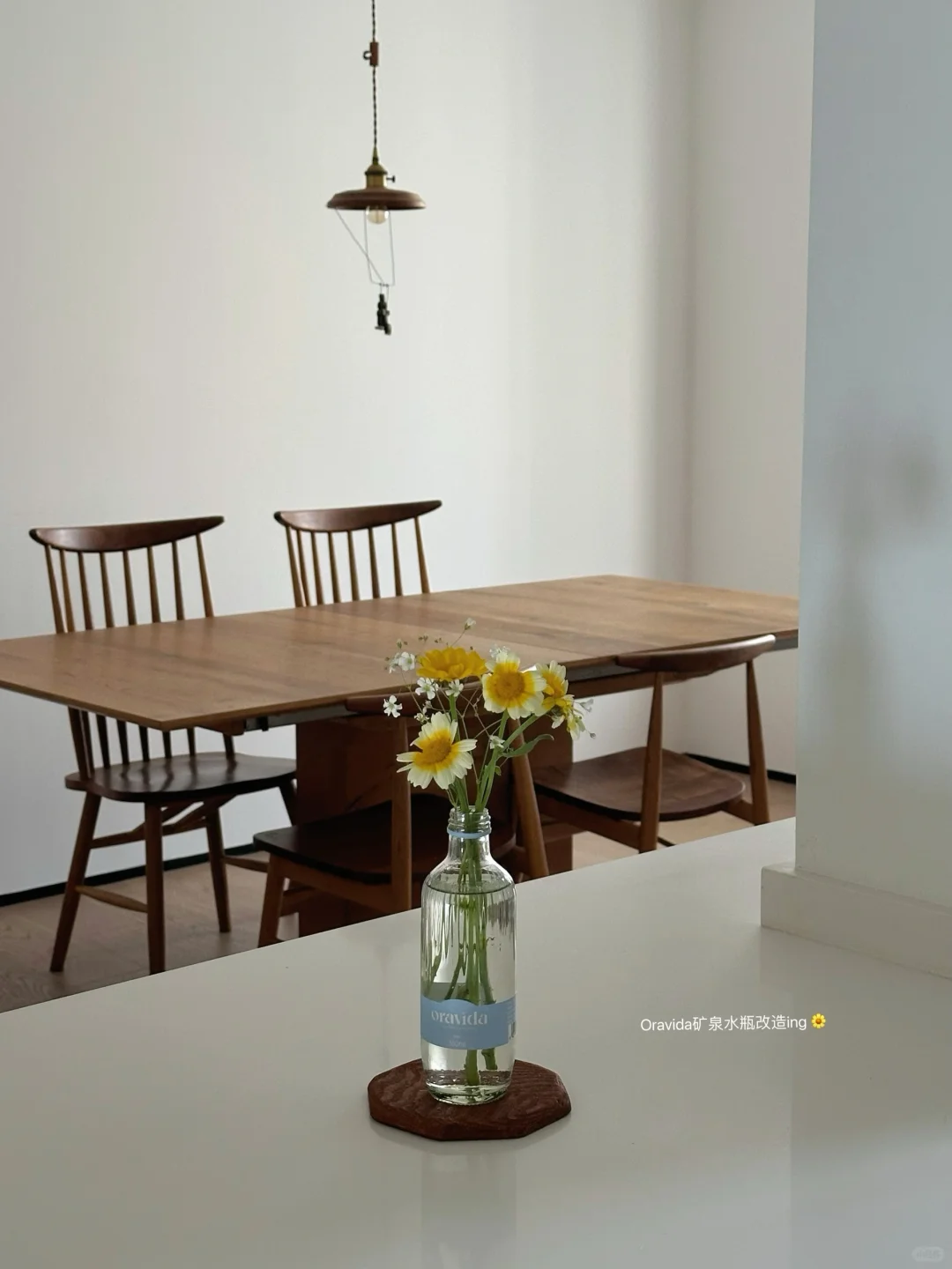 喝完的瓶子我还养了几朵茼蒿菊 有点好看🌼