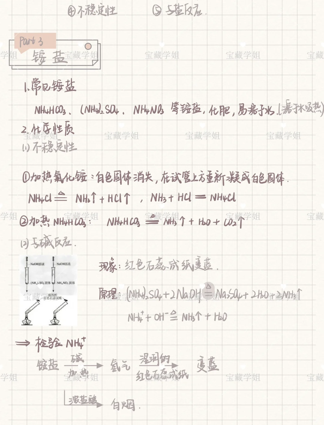 🌟大家春节过的怎么样呀?休息之后我们可以回归到学习生活中啦‼️ 🌟今天更新的是氮的新章节,氨气和铵盐 🌟重点:喷泉实验(包括引发条件、适用气体) 铵盐的相关性质 氨气制备实验🧪(方程式+收集+验满+注意事项) 🌟寒假多预习,上学更轻松,加油‼️