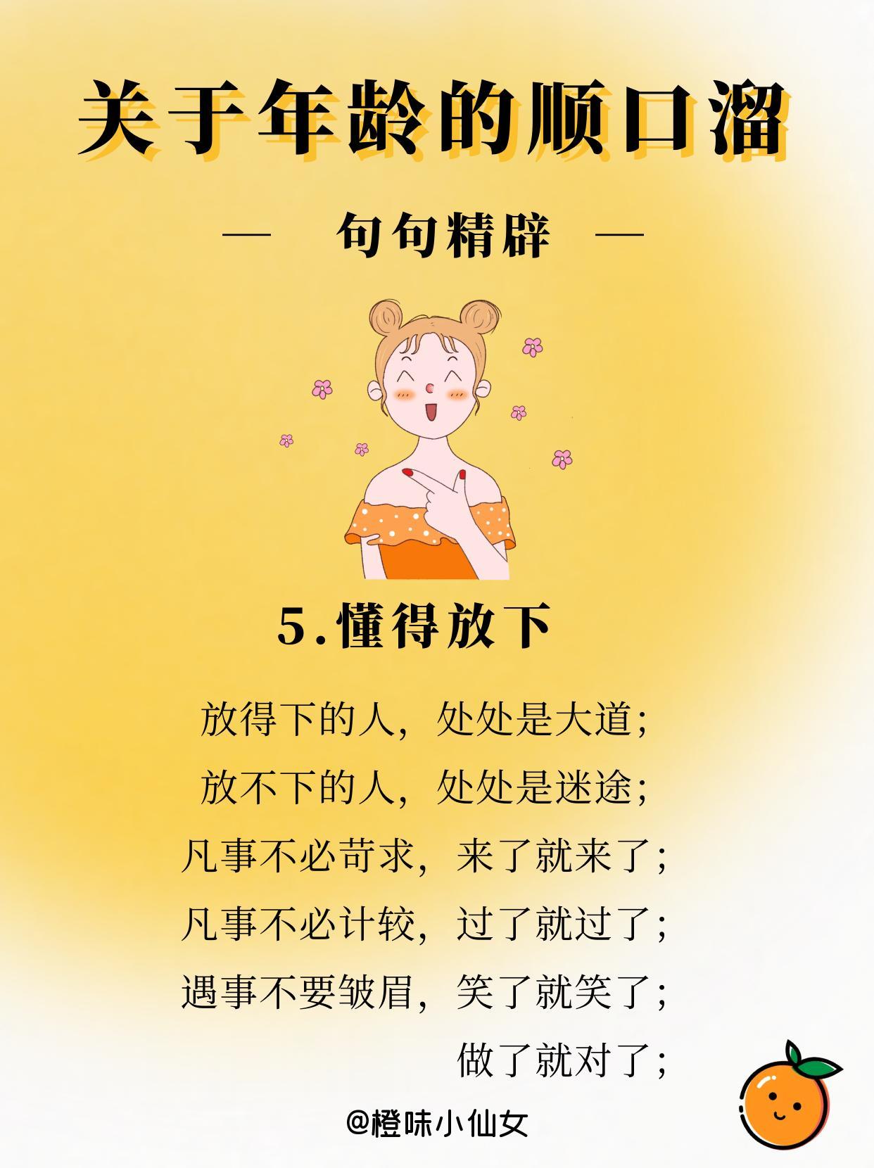 年龄顺口溜,句句精辟!人生,就是一种感受,一场历练,一次懂得,愿君安好。
