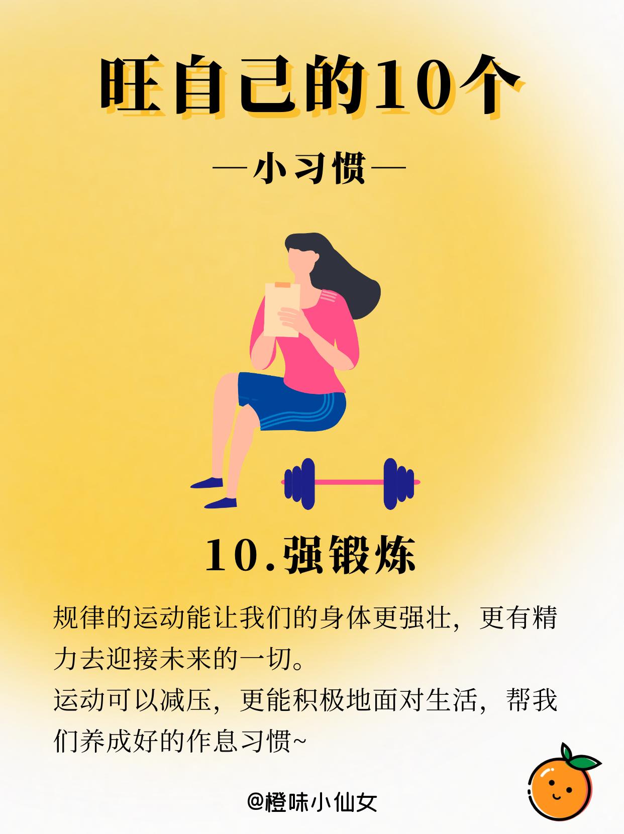 优秀的女生,都在坚持这10个微习惯。生活中,我们要学会定期整理,摒弃无用之物; 克服拖延,立即行动;调整好心态,乐观面对生活; 积极体验新事物,拓宽视野和思维; 坚持运动,保持良好状态; 还要强制储蓄,有存款才有底气。 做到这些,我们能让自己变得更优秀, 减少焦虑,拥有更美好的人生。 同时,要明白读书和运动是永远值得去做的两件事, 不要当“月光族”,要为自己的未来做好规划和准备。