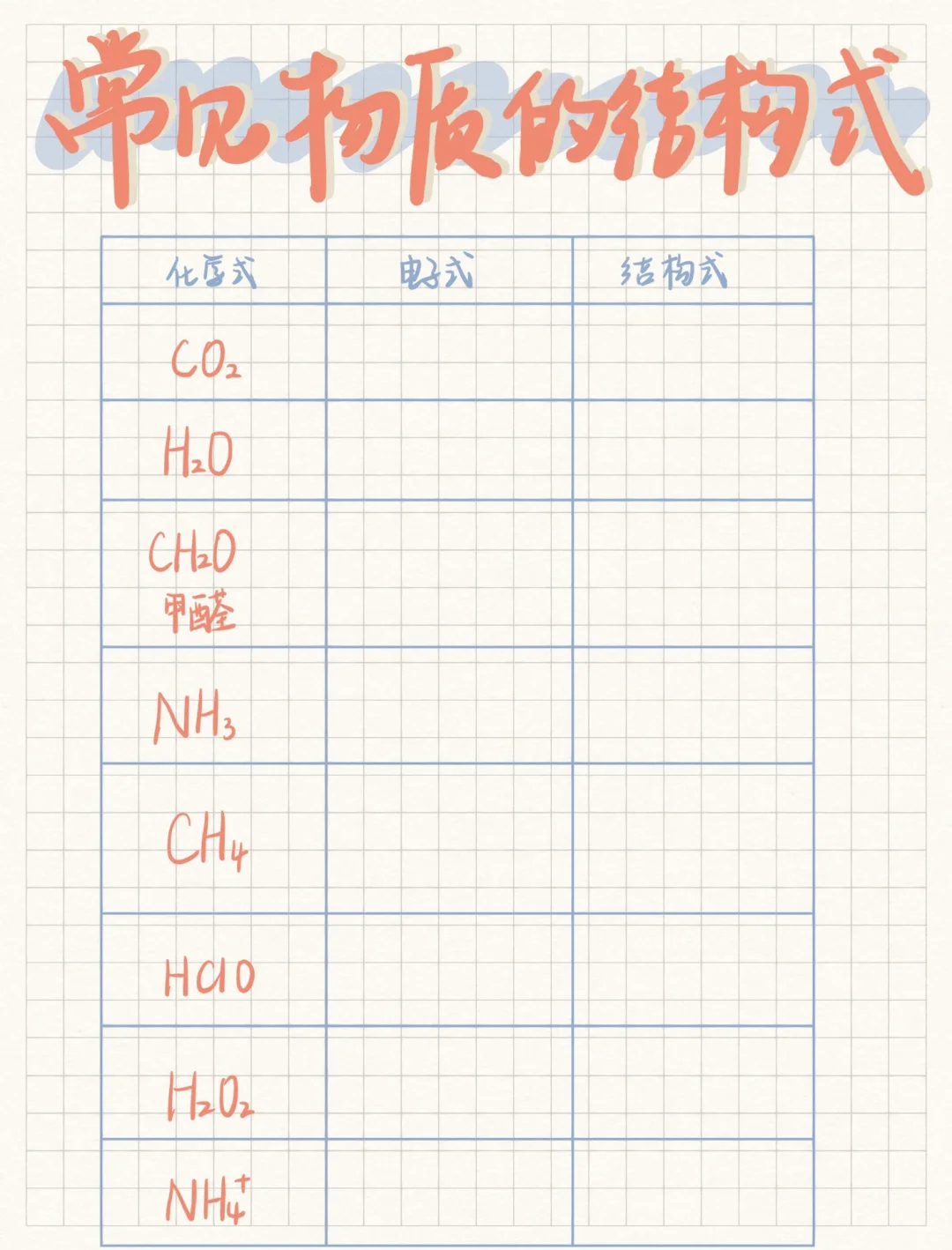 👉🏻高二的同学如果正在学习结构,正在学习共价键键型、空间构型的计算,那么其实快速能在脑中浮现出常见物质的结构式电子式是能够帮助大家快速解题的 👉🏻高一的同学再过一阵就需要了哈哈,可以先备着 👉🏻前面是答案,后面是空白卷方便大家练习