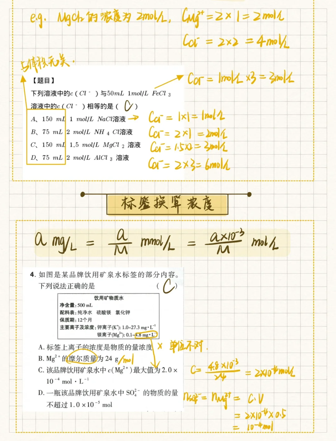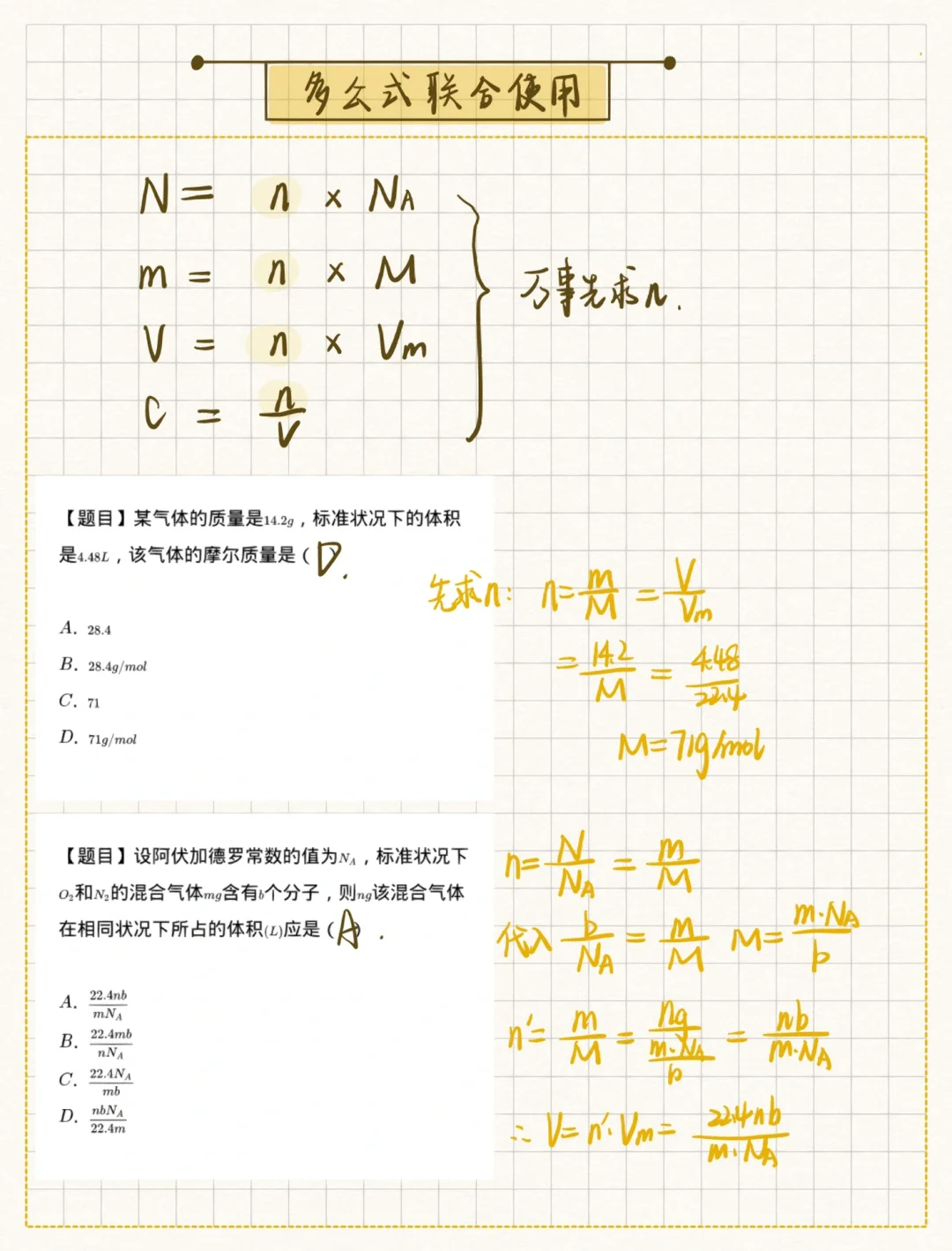 高一化学|物质的量总结‼️干货公式+例题🔥