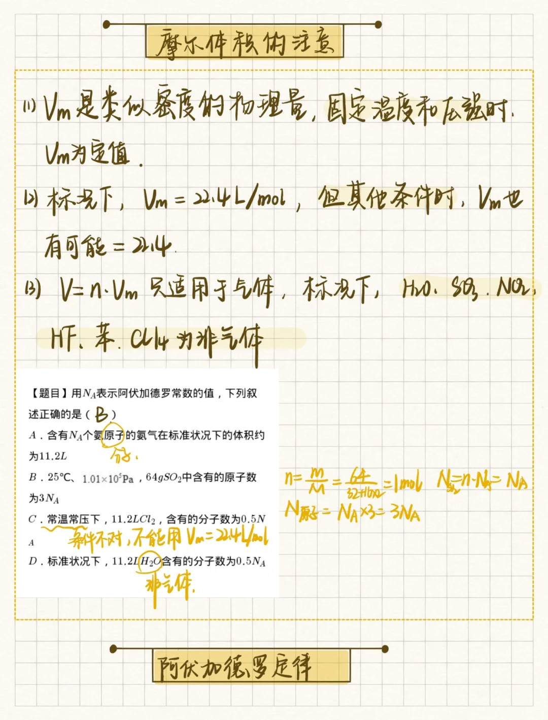 ☘️上次答应大家的物质的量考向总结终于肝出来了‼️每个小考点都给大家配了一道例题,便于理解和掌握 ☘️建议大家就直接翻看然后找到自己哪个点不会的把公式和例题直接搬自己笔记上,下次再考就记住了👍👍👍
