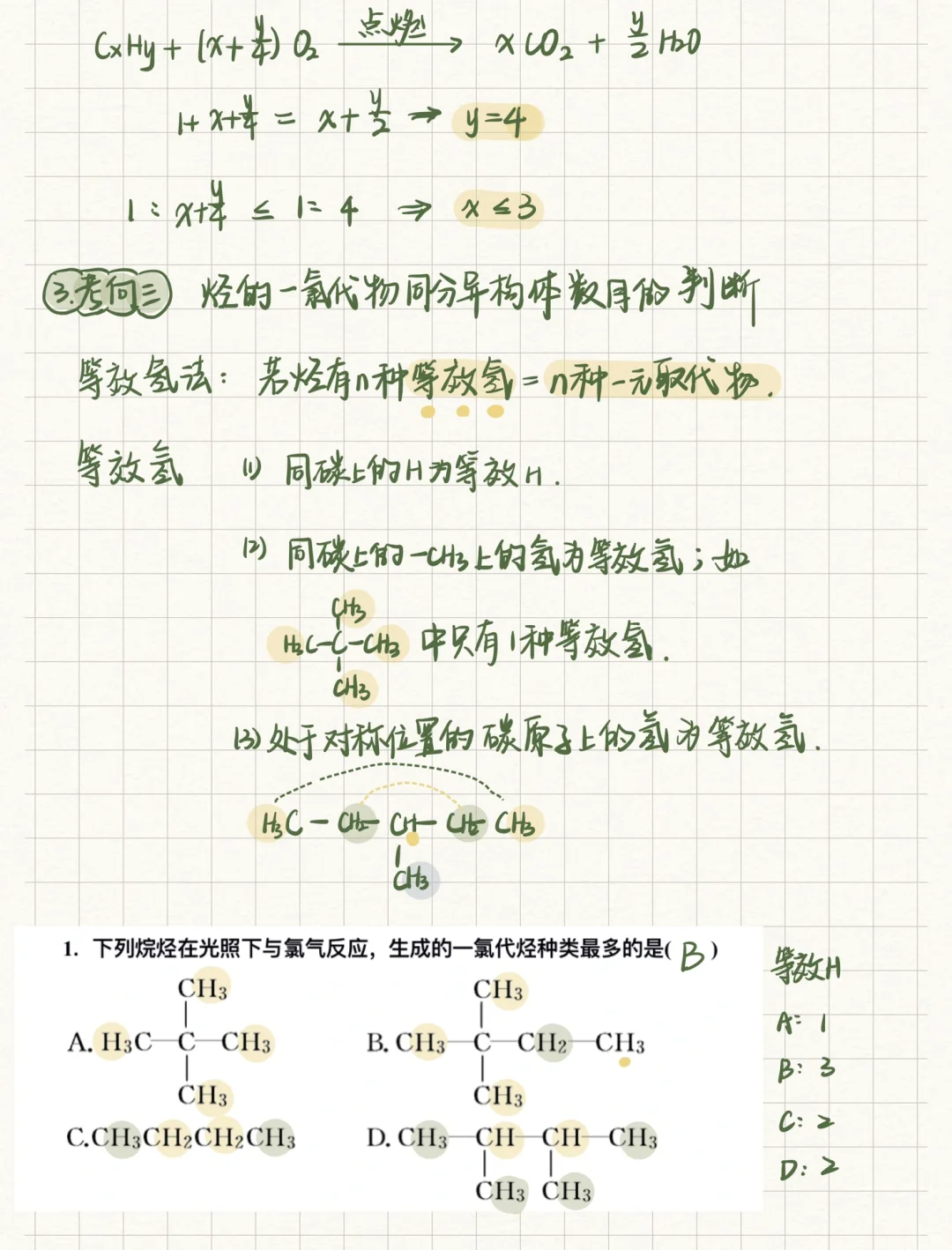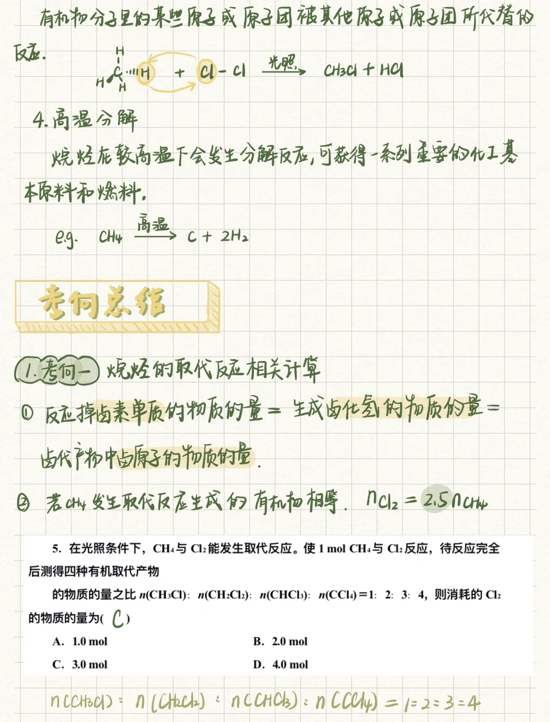 高一化学|烷烃的性质笔记总结‼️考向➕例题‼️