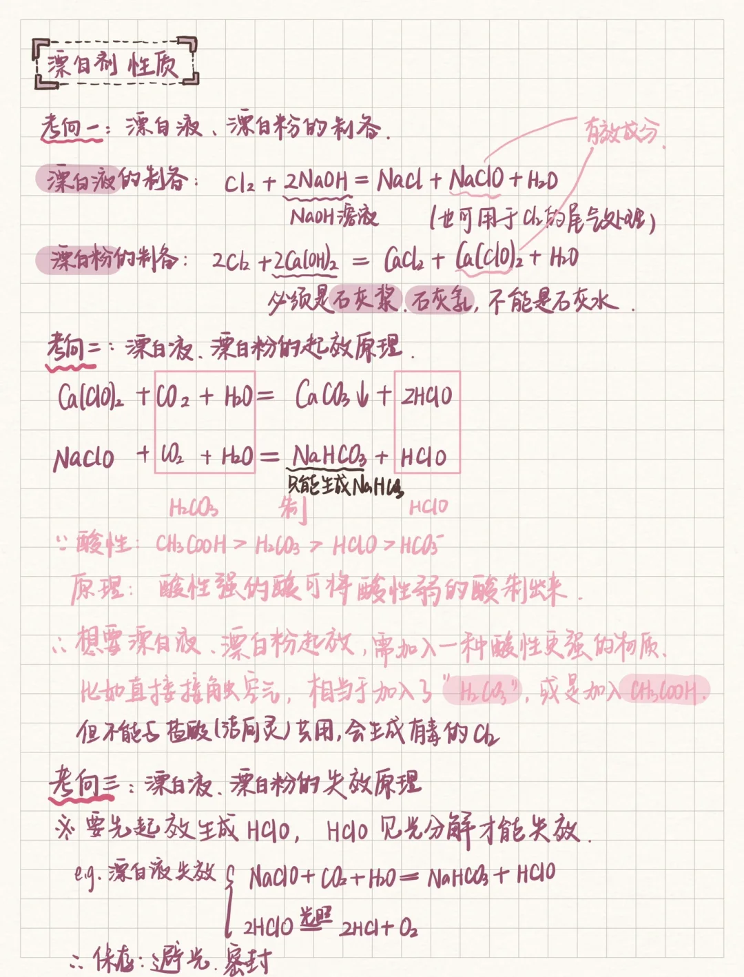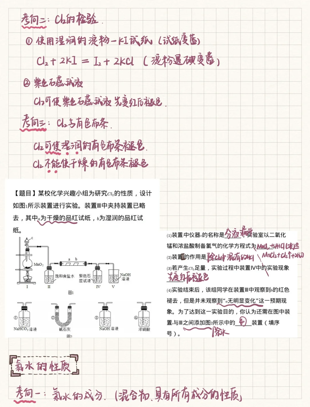 ☘️好多同学现在做到氯的实验的相关题目都有点费劲,本篇笔记学姐从:氯气的制备,氯气的性质,氯水的性质,漂白剂的对比🆚等几个方面给大家总结考点 ☘️大家可以看看哪个知识点不会,赶紧记‼️‼️‼️ ☘️相关习题在上一篇笔记,看完知识点再练题👍