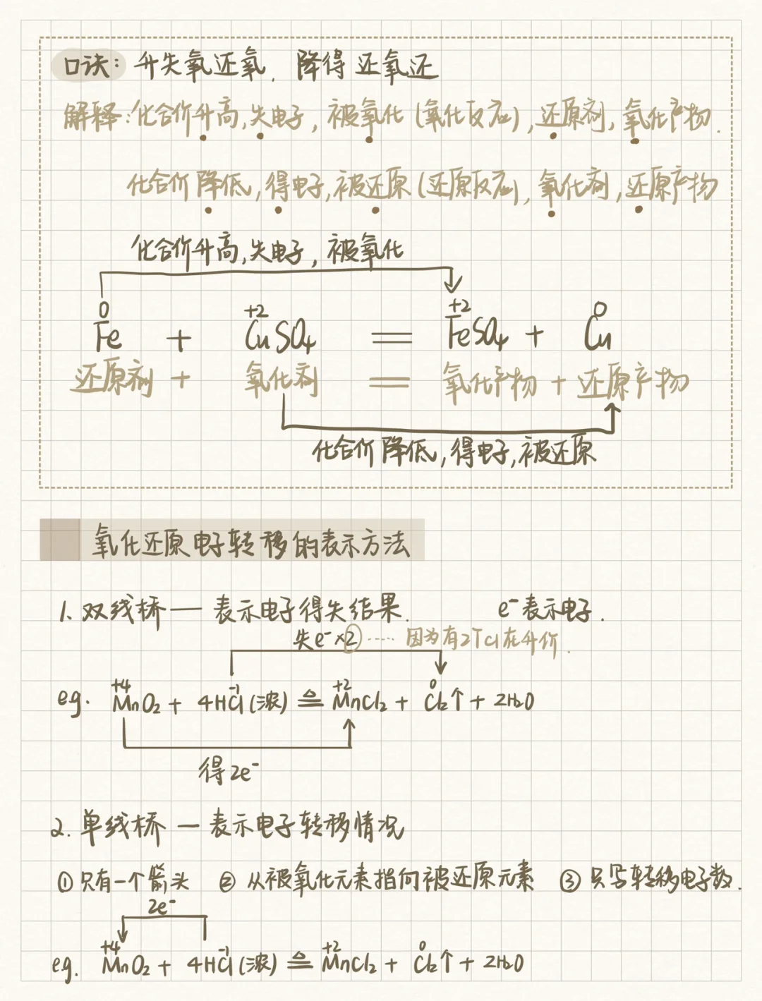 🔥第三节内容来了,这次大家要感叹笔记内容变少啦,但千万不要掉以轻心呀!这节课教的是思路,思想。用这种思路思想去解题才是我们学习的目的 🔥这节课的重点:一定要会区别氧化还原反应中各类名次,能判断好转移电子书数目,熟练再熟练氧化还原反应的配平‼️