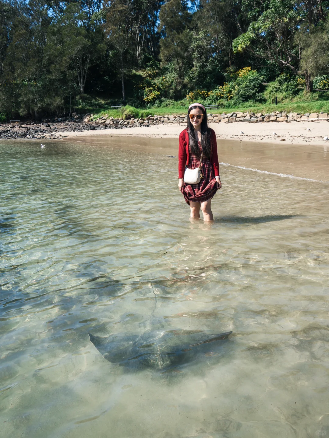沙滩边就能看到野生黄貂鱼,当地小朋友给了我们2条鱼喂它,很有趣!
