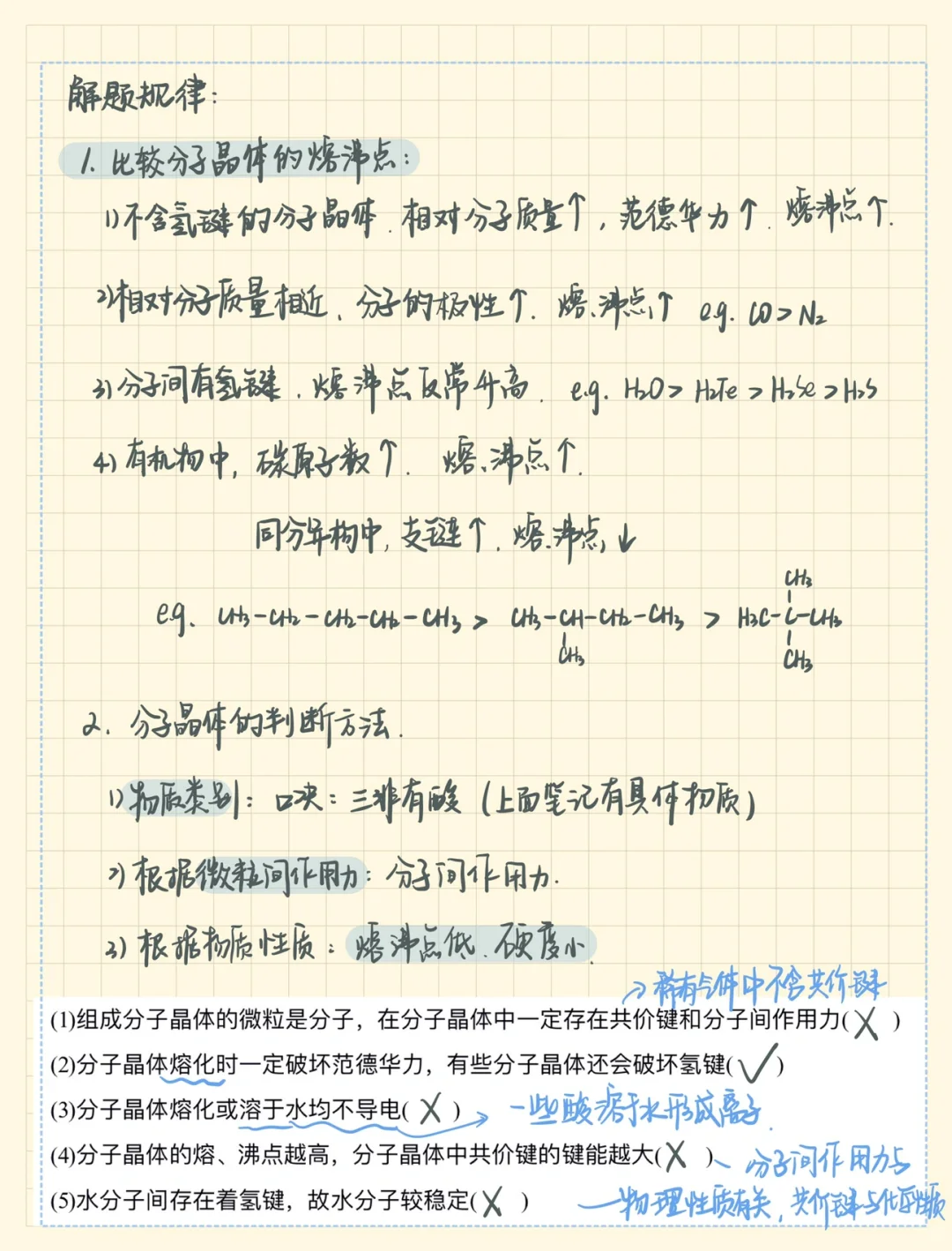 高二的笔记更新比较慢,高二的同学别着急哈,我尽量更新,本篇是分子晶体和共价晶体的知识点,给大家配了解题规律和例题,可以好好吸收理解一下
