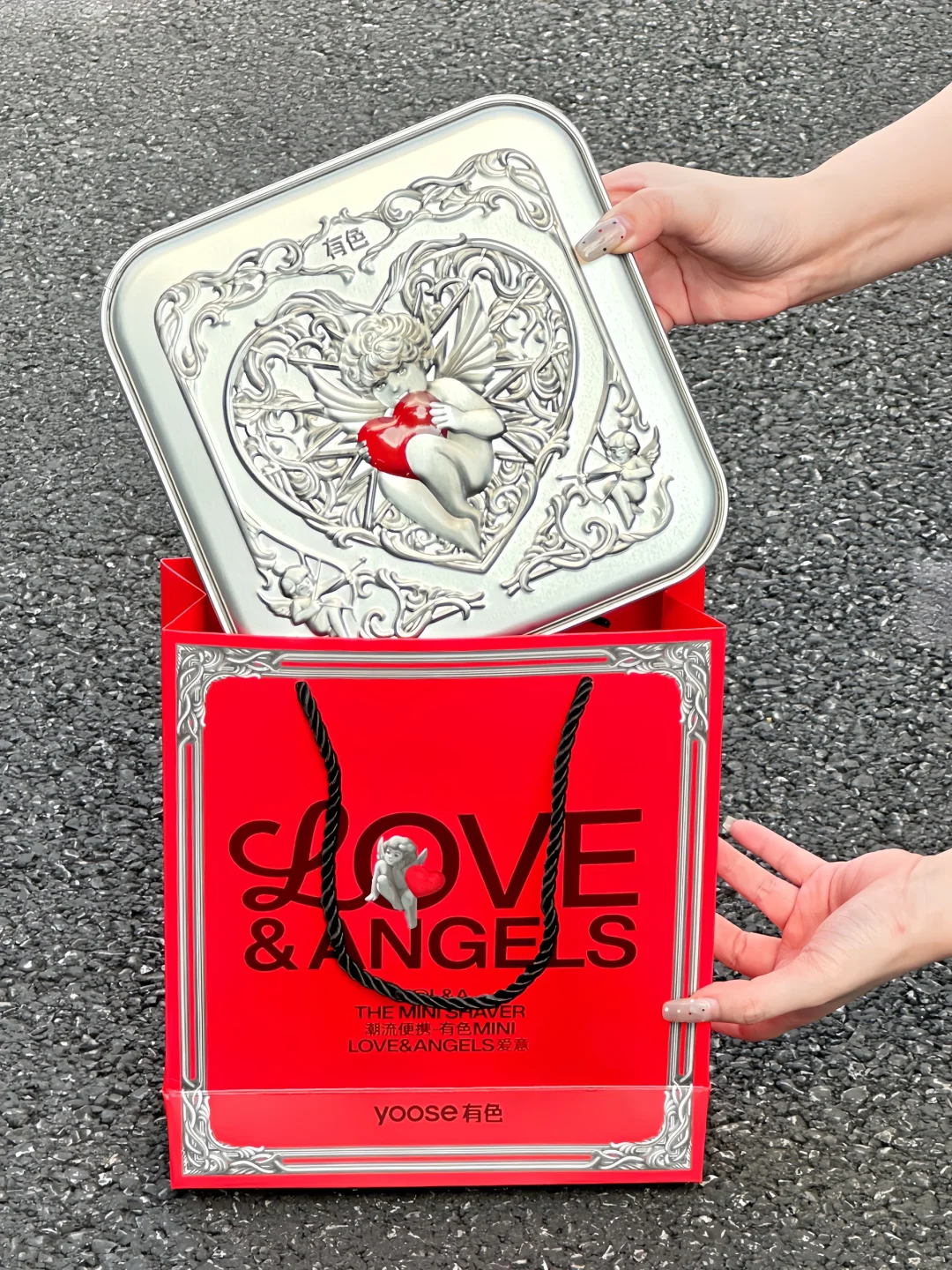 这马路背景还挺搭礼盒颜色哎