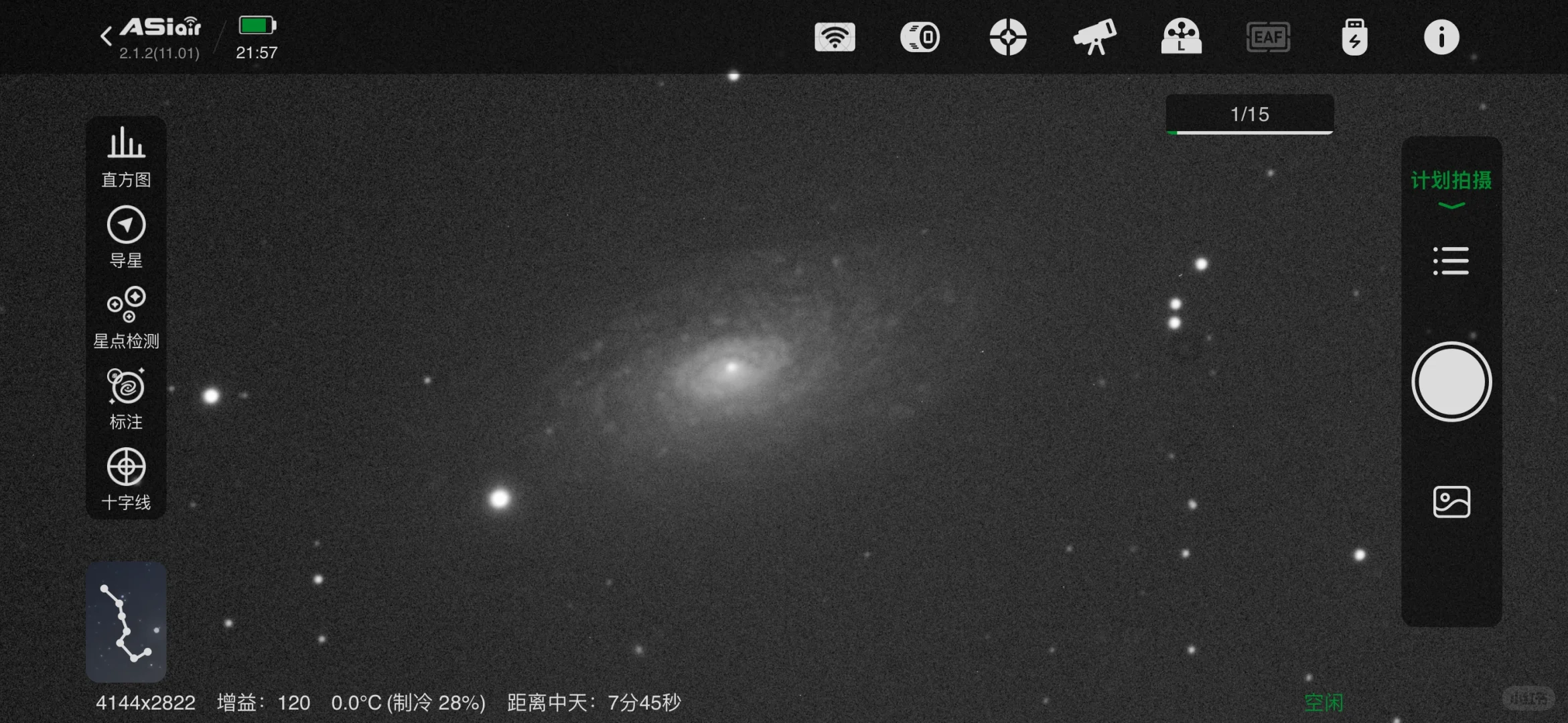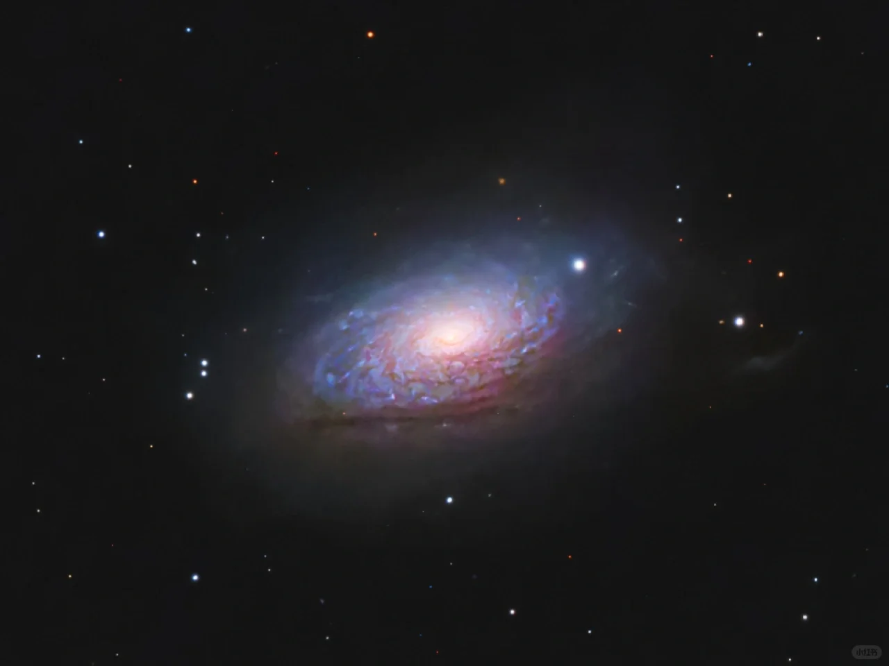 5月7日,打野拍摄M63向日葵星系。M63向日葵星系外形酷似向日葵因而得名,距离地球约3000万光年,其大小与银河系相仿,直径约10万光年。这天雾霾很重,天空中亮星都几乎不可见,后期难度很大,强行出图。(还有凌晨的附带出片M2球状星团)