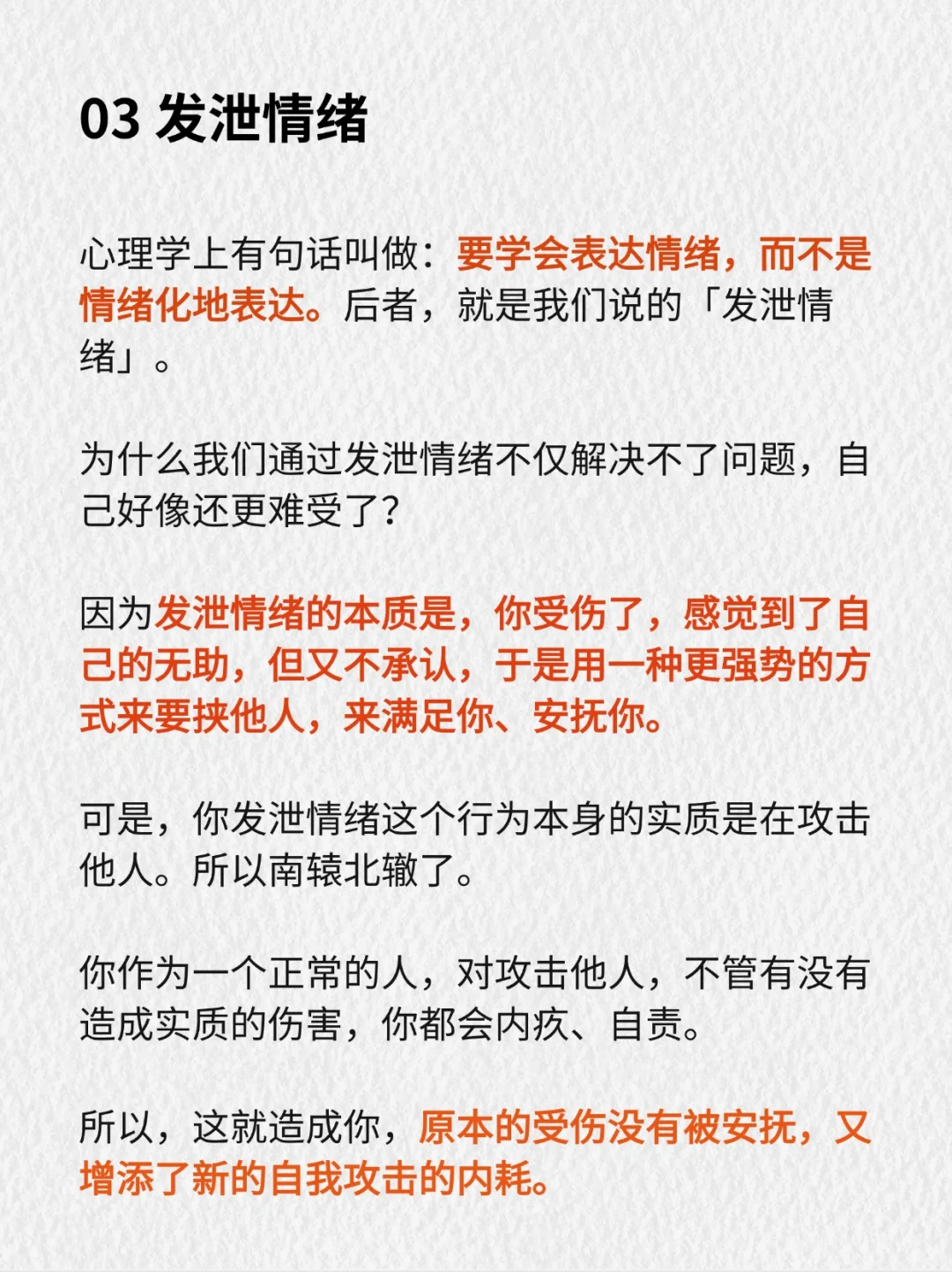 心理学上有句话叫做:要学会表达情绪,而不是情绪化地表达。后者,就是我们说的「发泄情绪」。