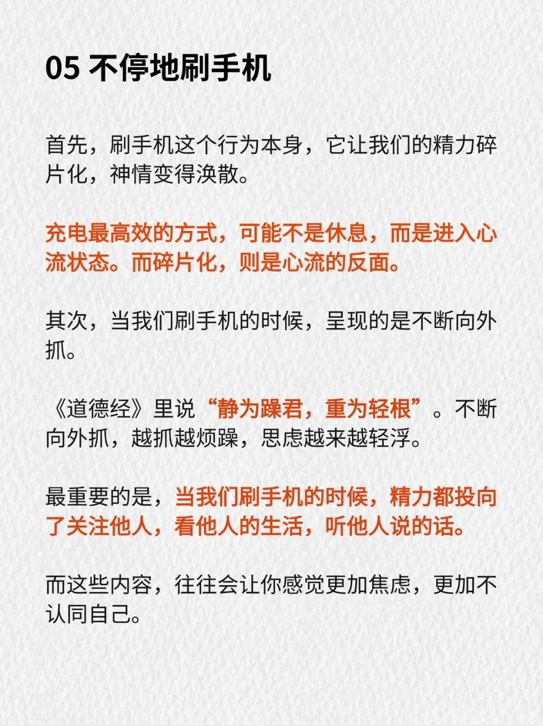 最重要的是,当我们刷手机的时候,精力都投向了关注他人,看他人的生活,听他人说的话。