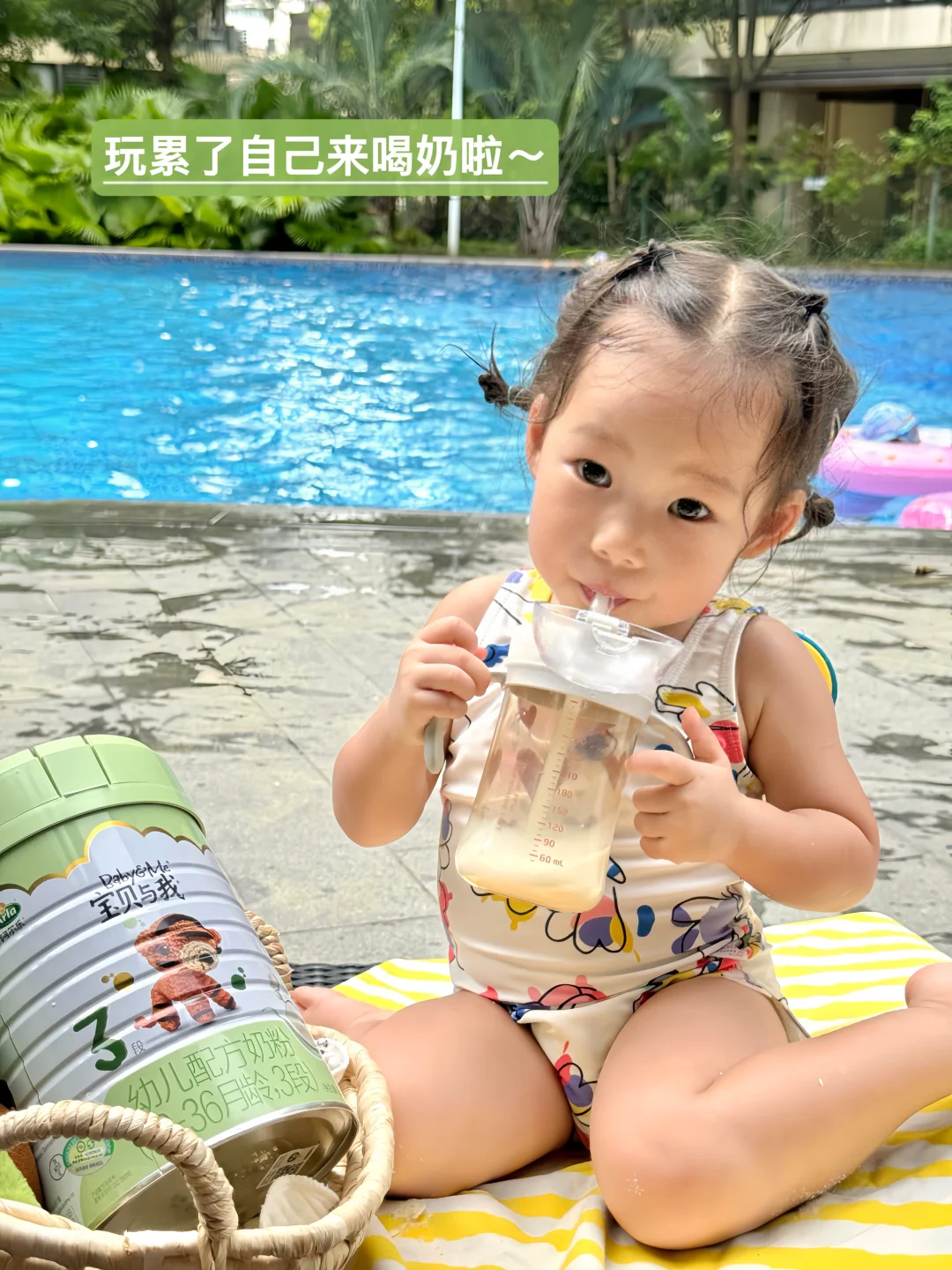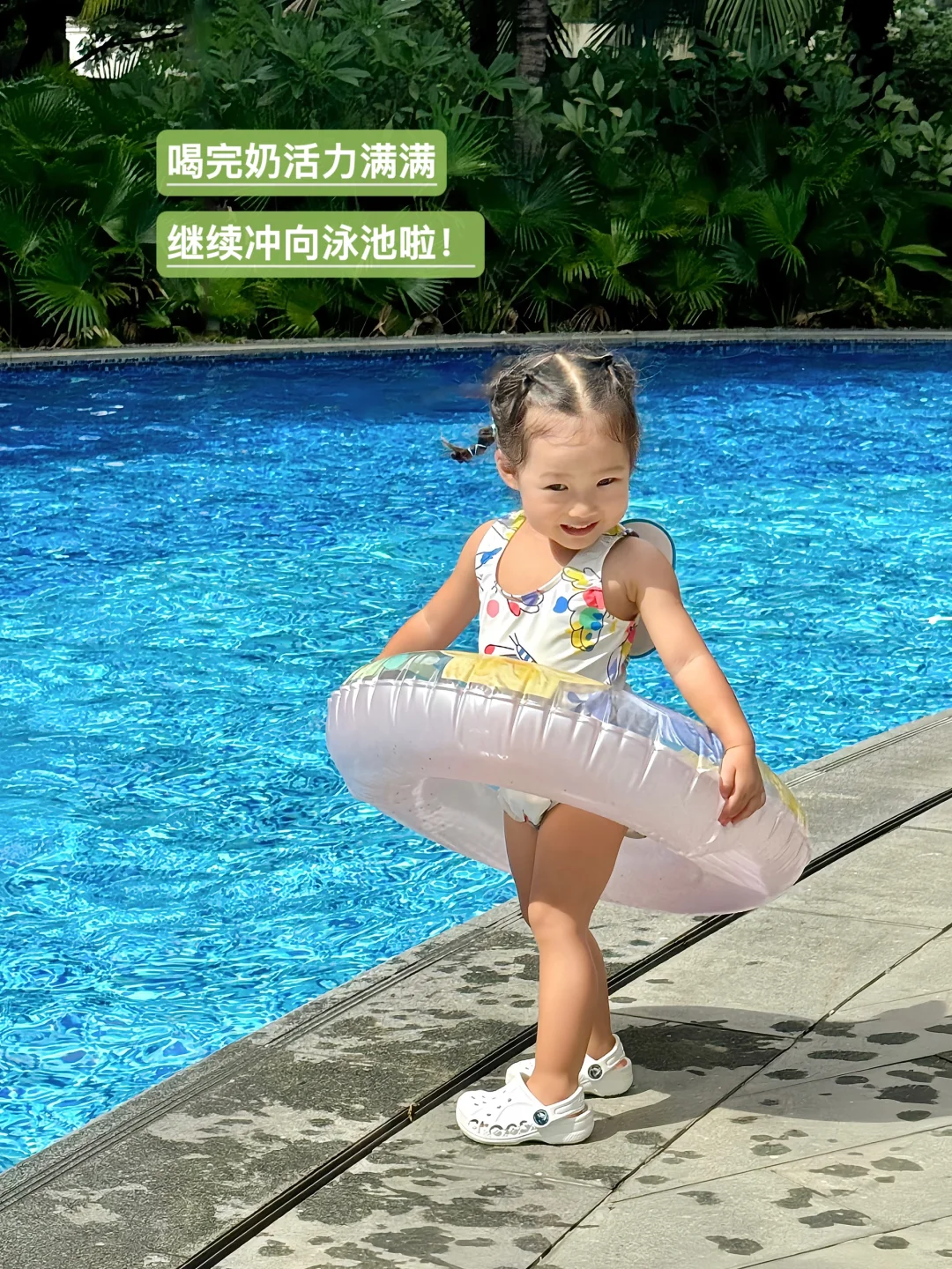 喝饱饱了活力满满!继续冲向泳池~🏖️