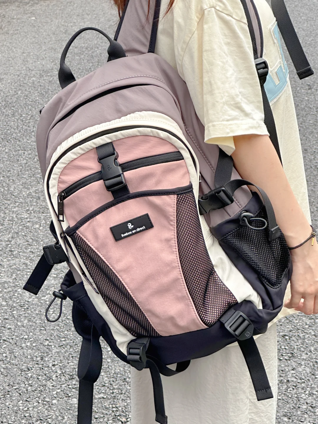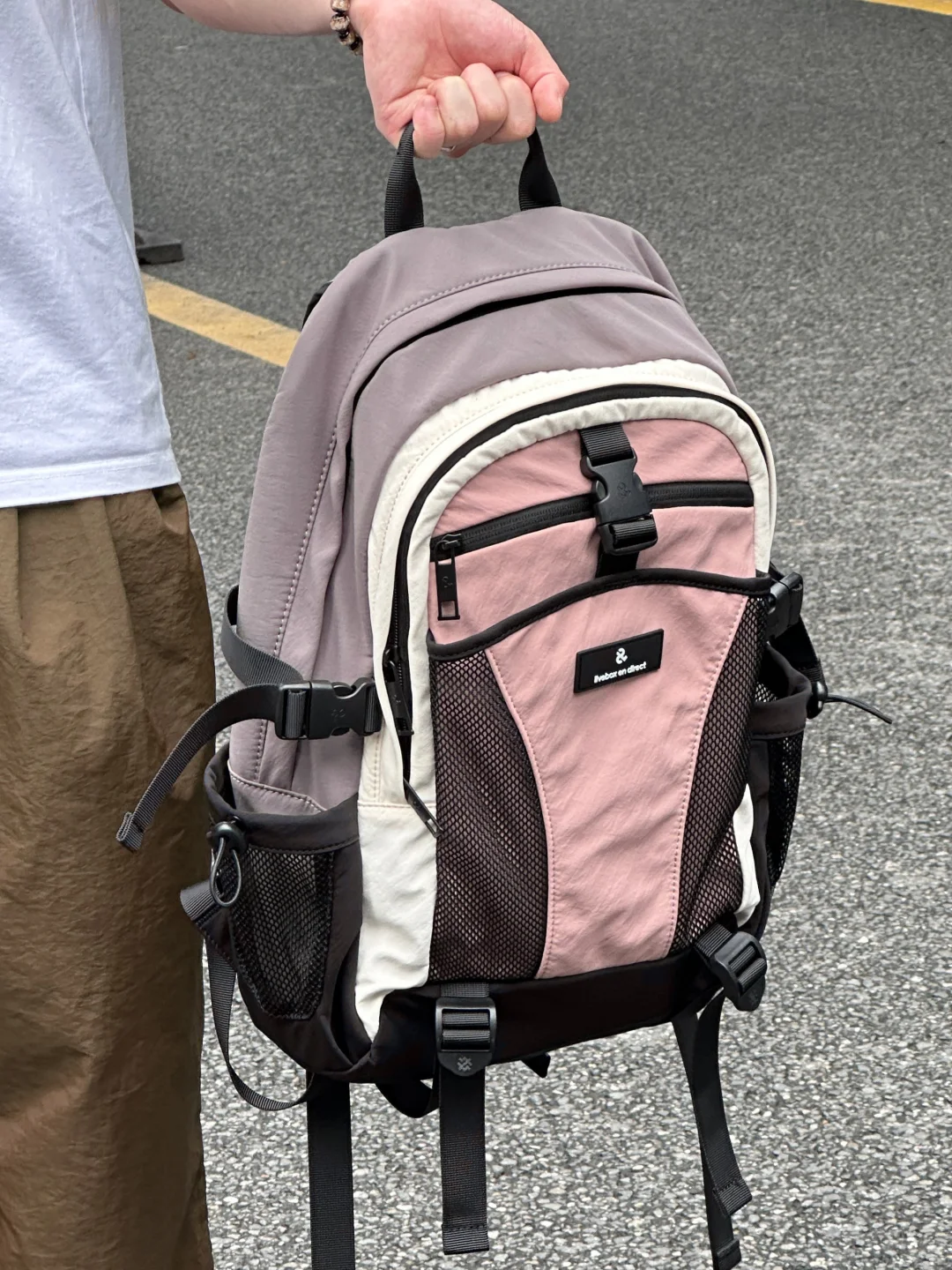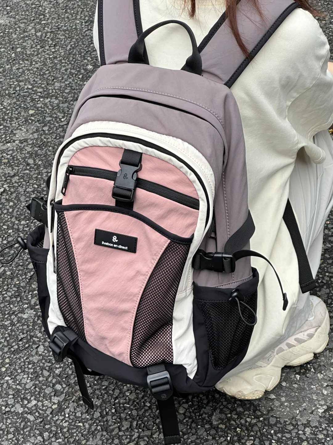 双肩包 书包 轻生活大学生书包大学生拼色巴西莓粉双肩包