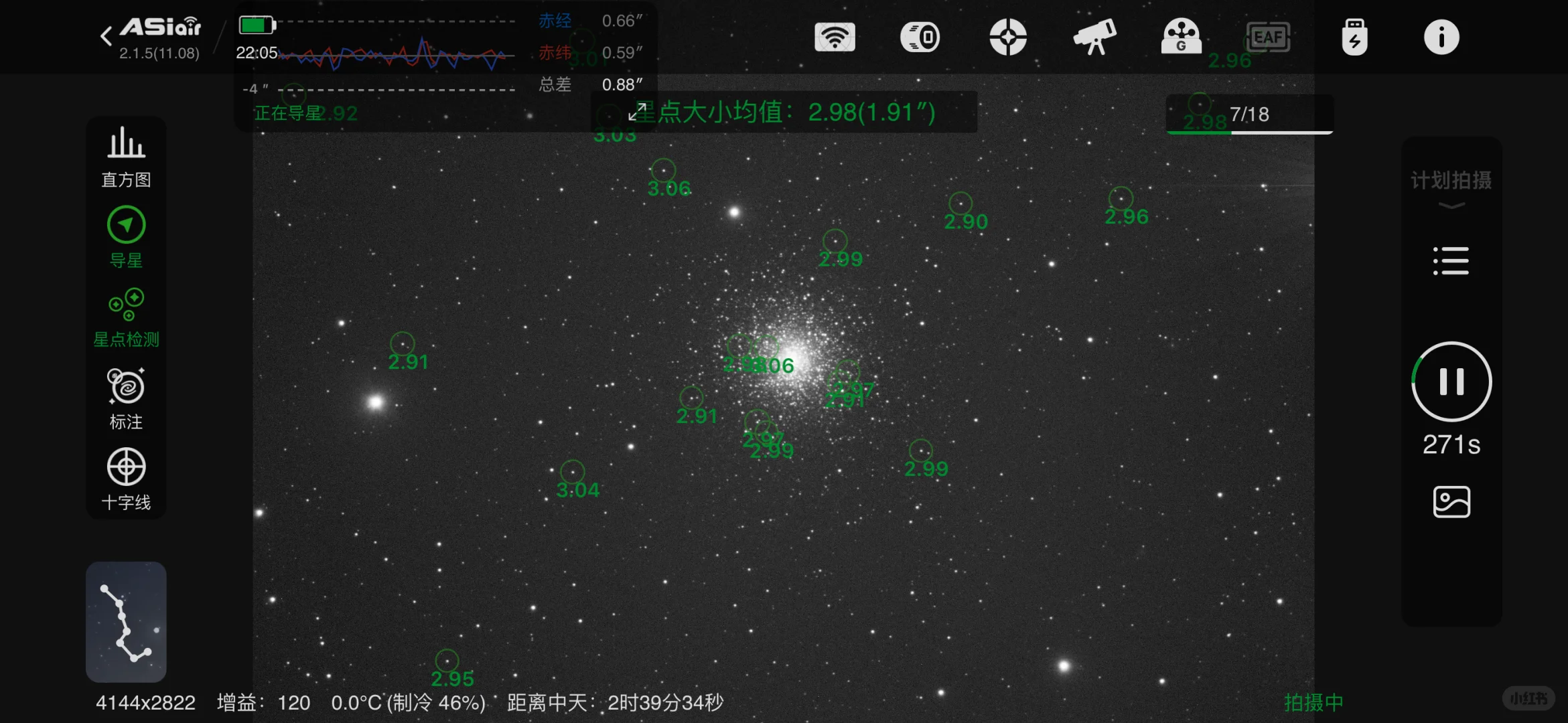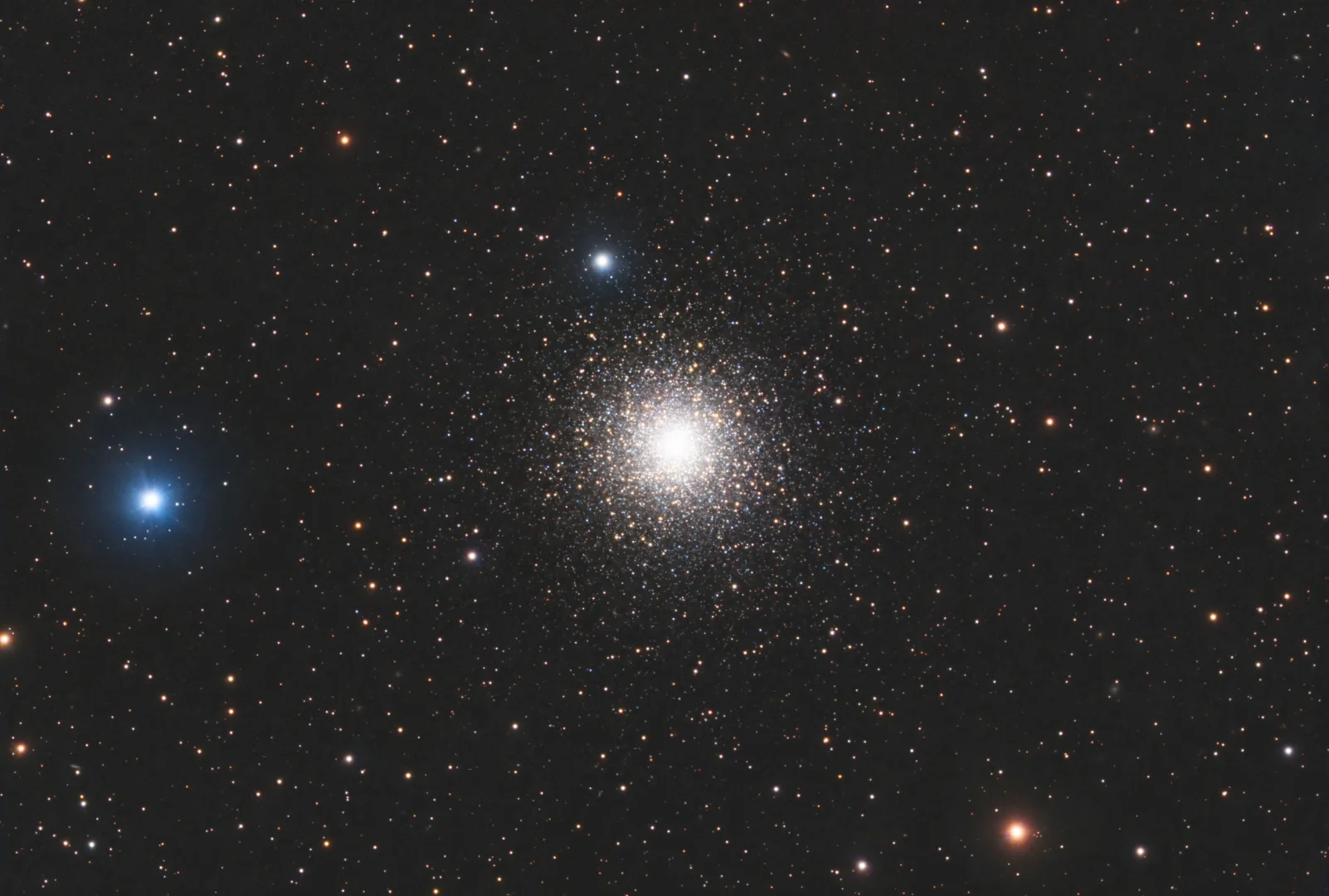 M15 是位于飞马座的一个球状星团,它的年龄约120亿岁,是已知最老的球状星团之一,距离地球3.3万光年,直径175光。在1450mm焦距天文望远镜中,这个球状星团像一朵蒲公英盛开于宇宙中。 拍摄工具:星特朗C8hd,Zwo asi294mm pro,EM31pro。