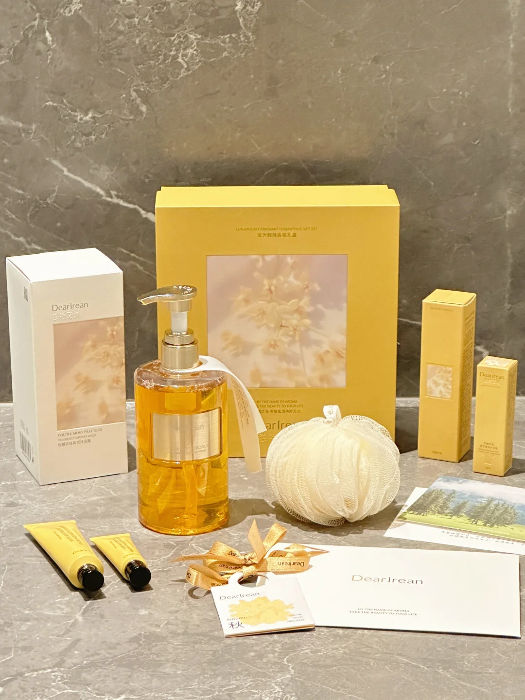 礼盒里面包含「你最珍桂」沐浴露+护手霜+香卡+沐浴球+小样