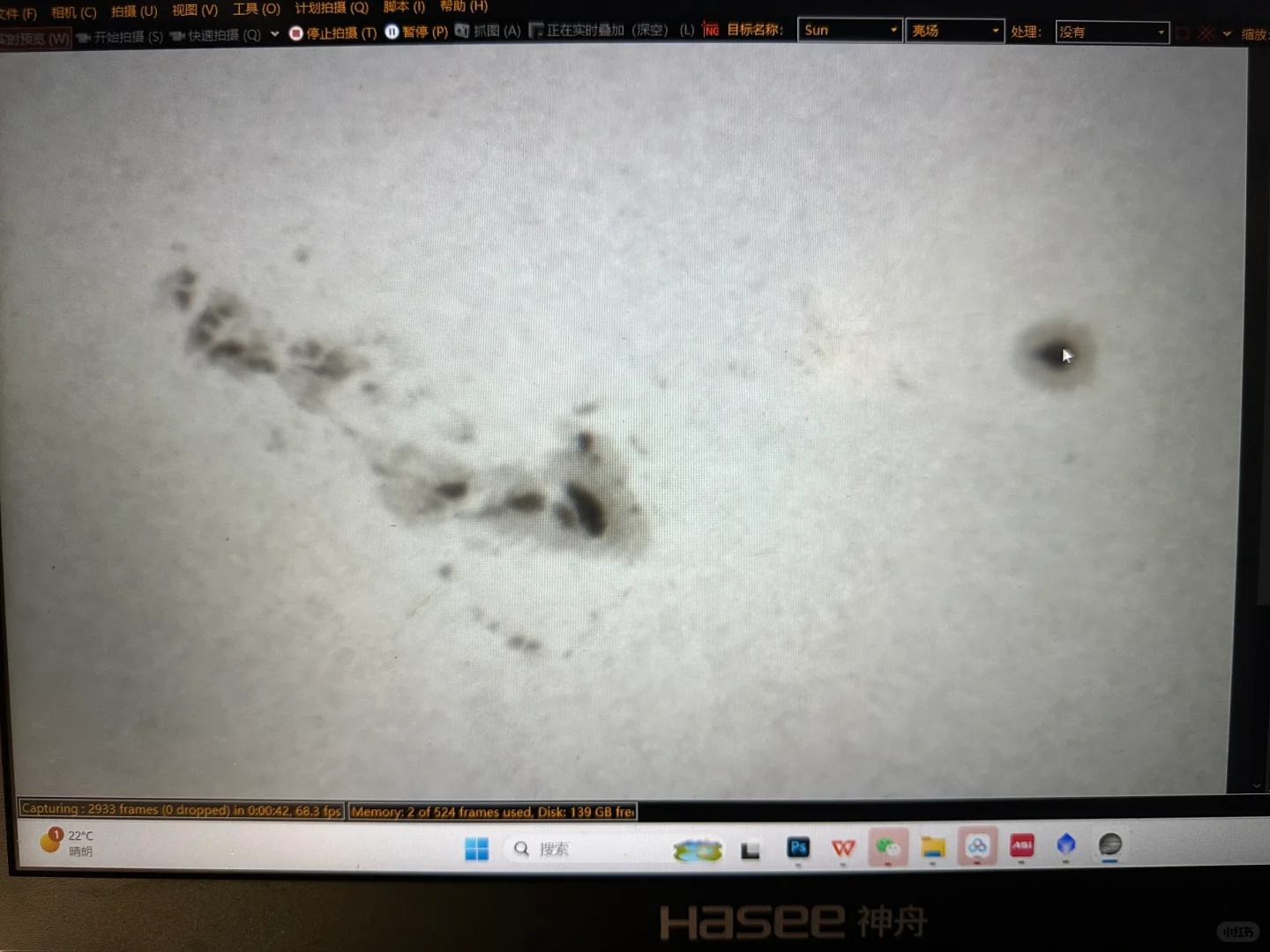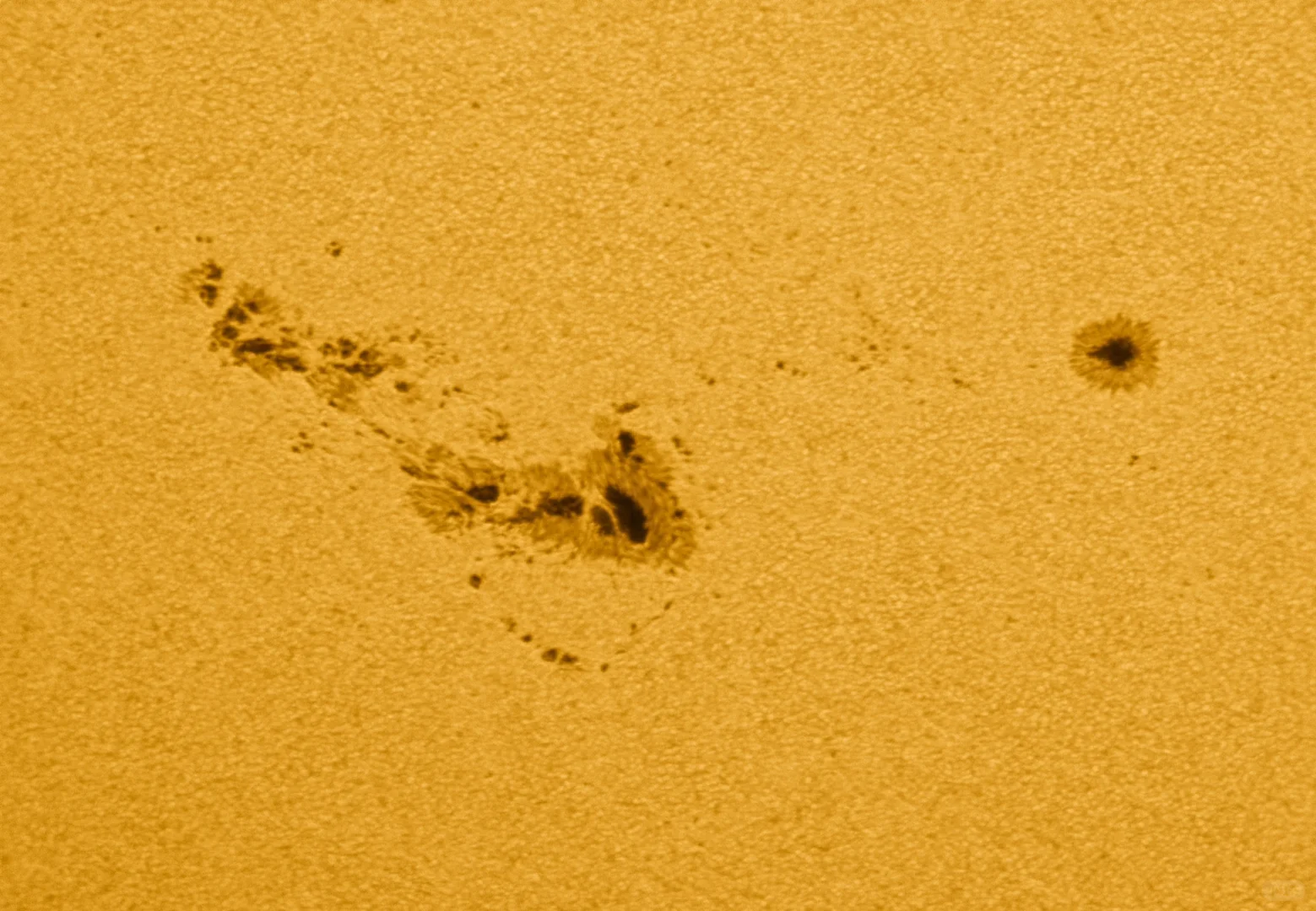 10.02的太阳黑子有热闹起来了,使用8英寸施卡拍摄的太阳黑子。
