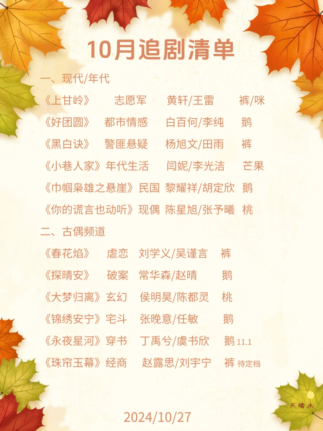 🍎主演:侯明昊、陈都灵、田嘉瑞、程潇