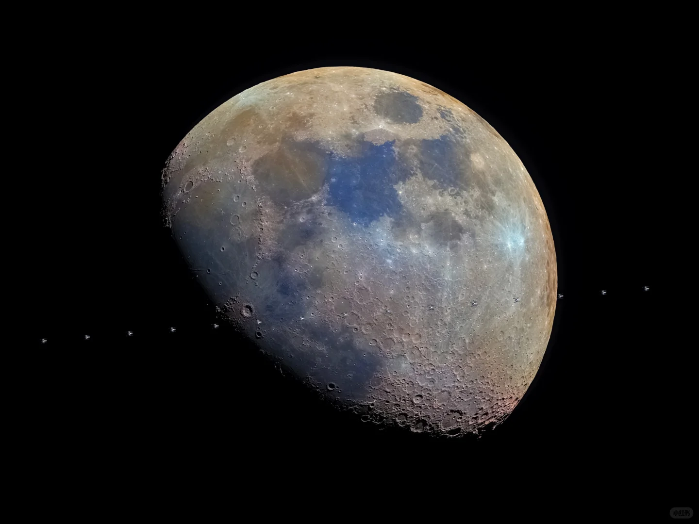 不一样的空间站凌月,傍晚的空间站凌月,既有亮凌又有暗凌。拍摄设备:Askar120APO,Zwo asi533mc pro,EM31pro.