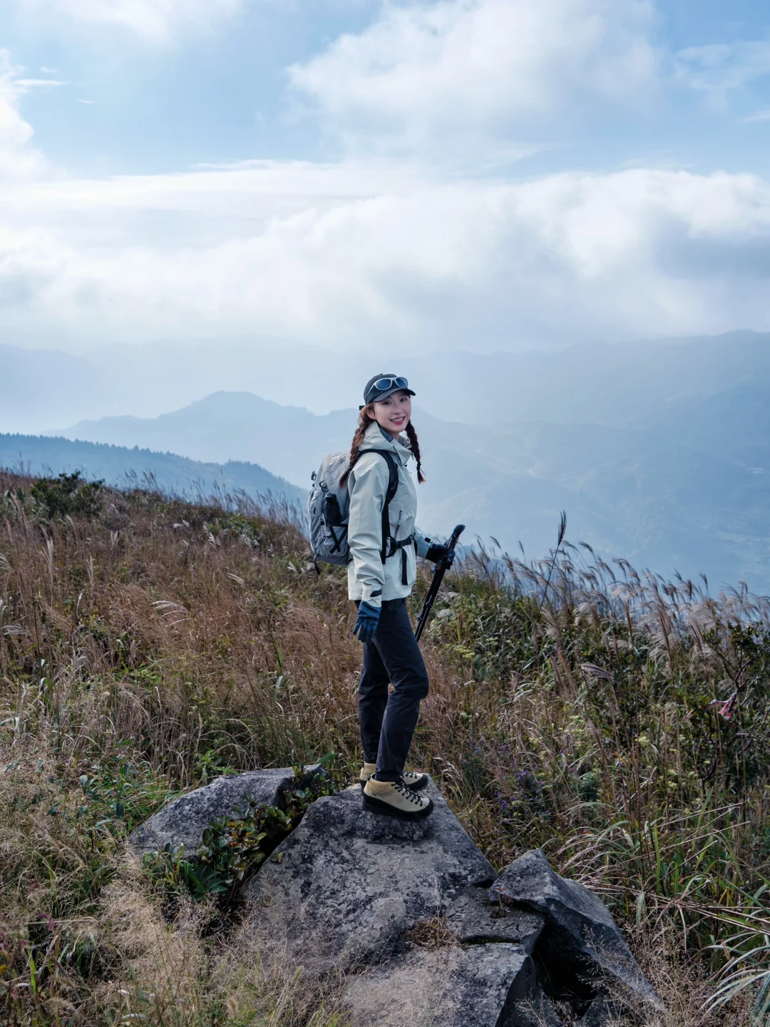 秋天的西白山,山顶已经透着阵阵凉意。秋天进山,天气多变,还是建议带件防护性好的硬壳。这阵子江浙一带台风频繁,山里的雨也是说下就下,这次穿了诺诗兰飓风冲锋衣,防暴雨级别的三层75D GORE-TEX面料,防风耐磨都特别棒。有它在山顶的放空时刻帮我挡风挡雨,发呆到夕阳落山也不用担心被冻着~