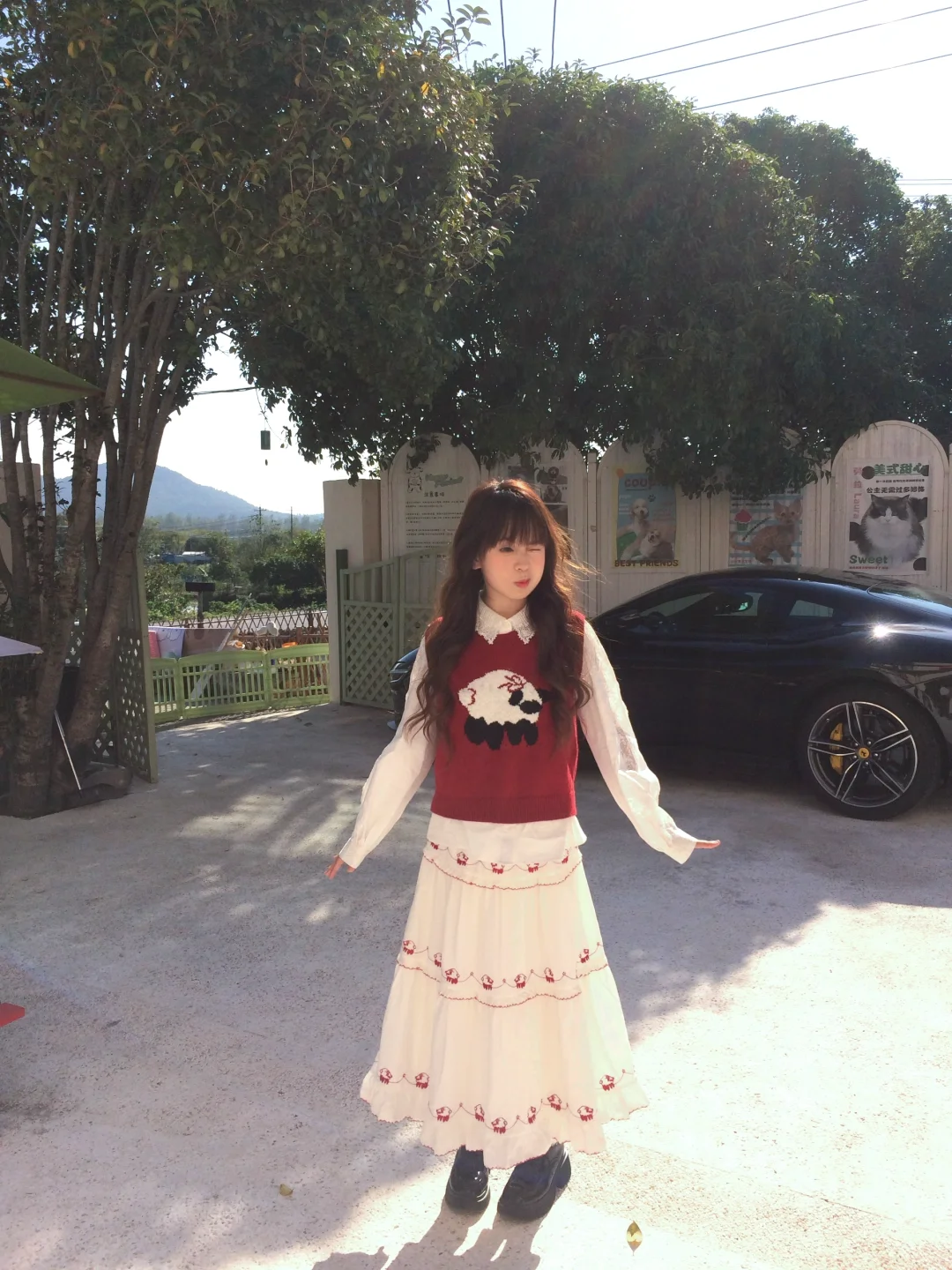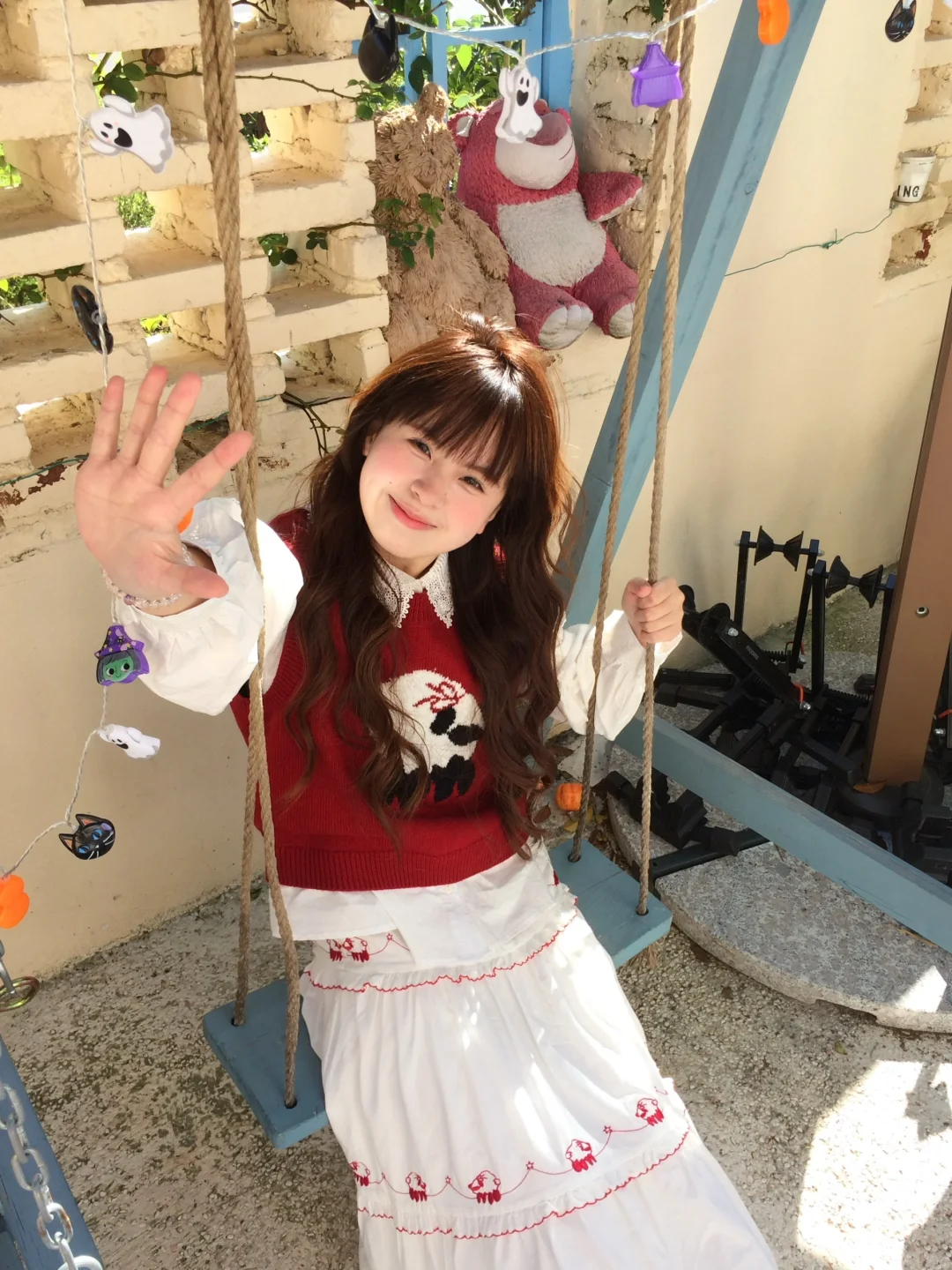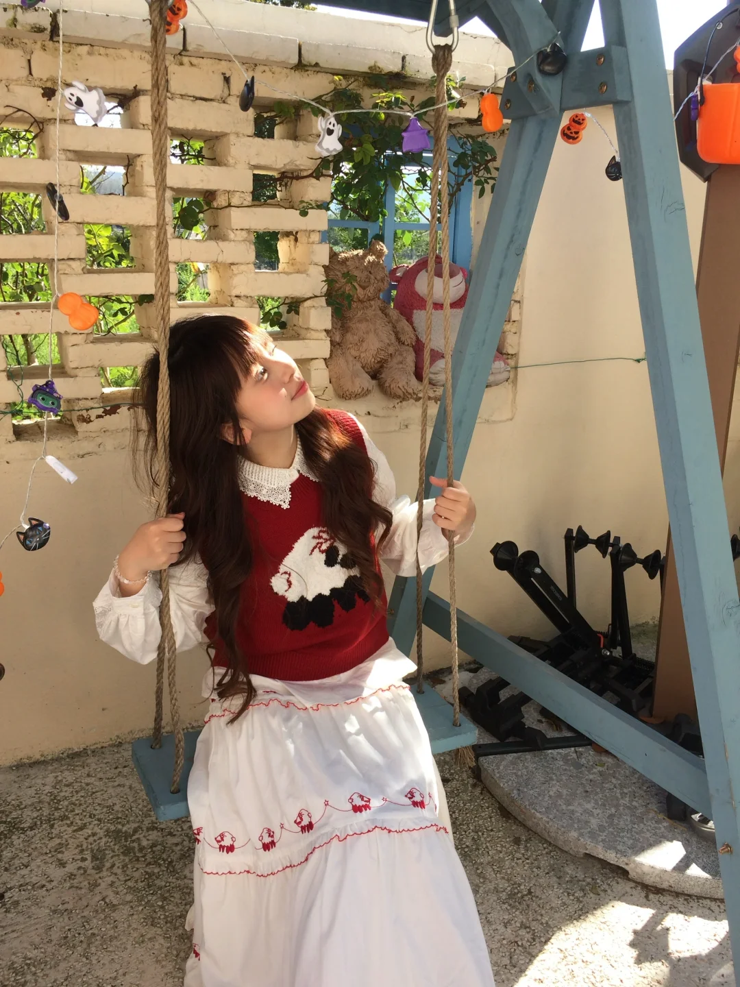 这家店布置了一点万圣元素🫢🫢穿的红色还蛮适合~