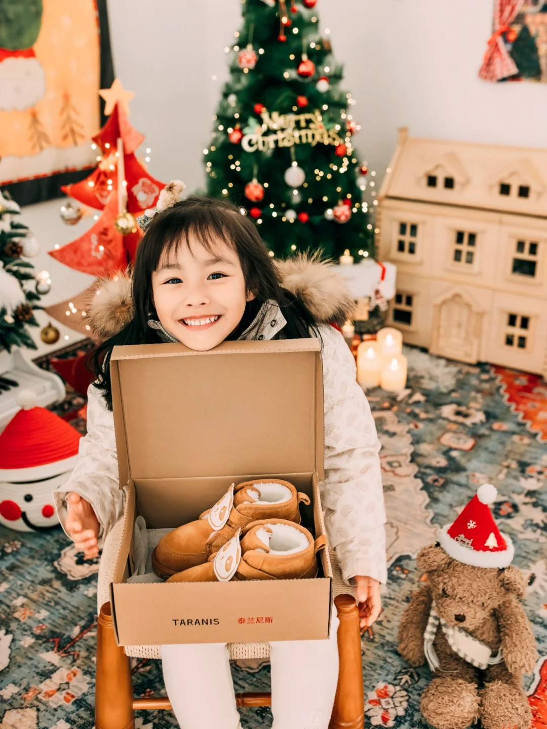 小棉袄不知不觉又长大了一些,看着她在秋日的阳光下蹦蹦跳跳,她纯真的笑脸就是我生活里的糖。总想把全世界最好的都给她,在这个突然降温的秋天,圣诞节即将来临之际,精心为她挑选了份礼物----泰兰尼斯雪地靴。