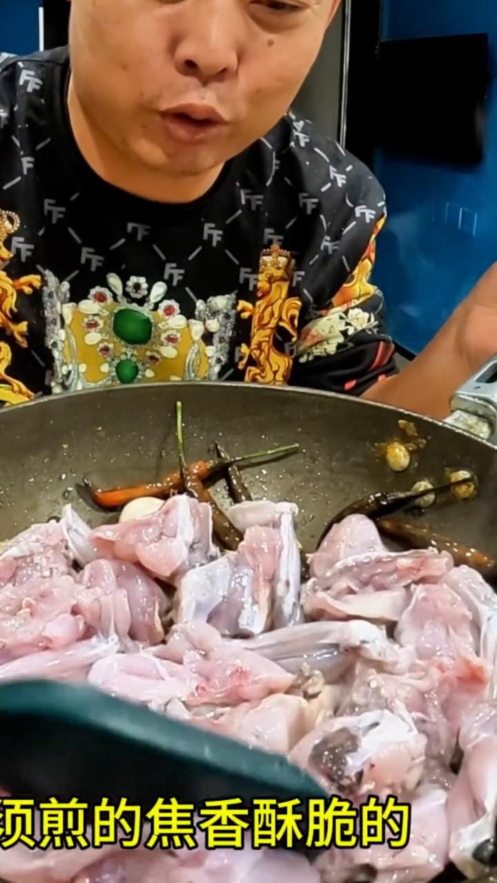 嘎啦巴西。 大家好,我是小三轮。今天可厉害了,花了五十多块钱买了五只大牛蛙。老板娘已经剁成大块了。 ·今天的下酒菜:香辣牛蛙。直接开炸,直接清除我的膀胱。开火,倒点83年的老机油,倒点这家才香。 ·油温七成热,放8颗小米辣爆香了,大蒜直接下。 ·先把牛蛙煎一下,颠煎的焦香酥脆的,这家才香。 ·抓把干辣椒继续炒,柱侯酱、黄豆酱、豆瓣酱、辣椒酱、海鲜酱、鸡精、三颗小冰糖,最后倒点蚝油。 ·五酱融为一体,颜色一下就上来了。 ·最后再倒点83年的老啤酒,香增腥。 ·最后直接焖个七七二百三十四秒。