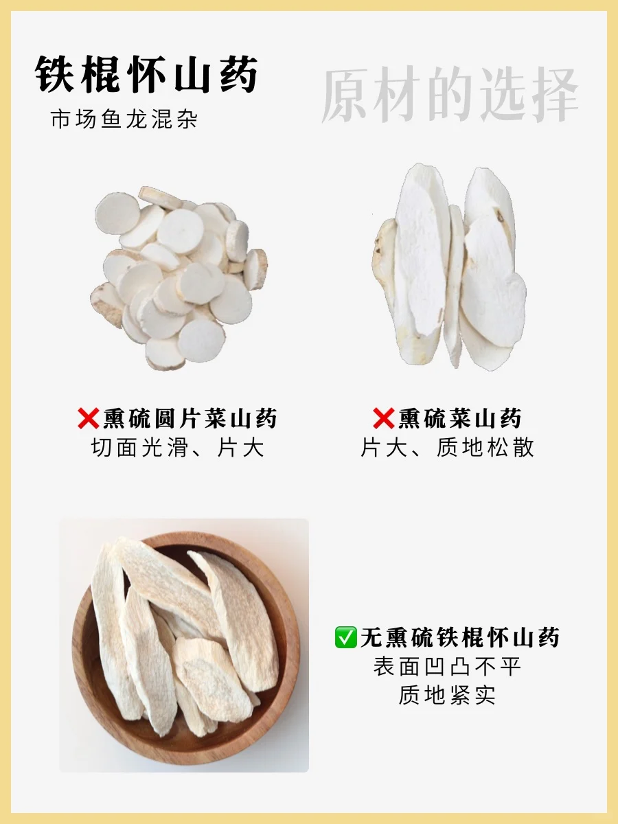 1️⃣铁棍怀山药:以河南焦作温县的垆土种植为佳,质地紧实、不熏硫颜色淡白色、切面凹凸不平,煮后甜糯可口。